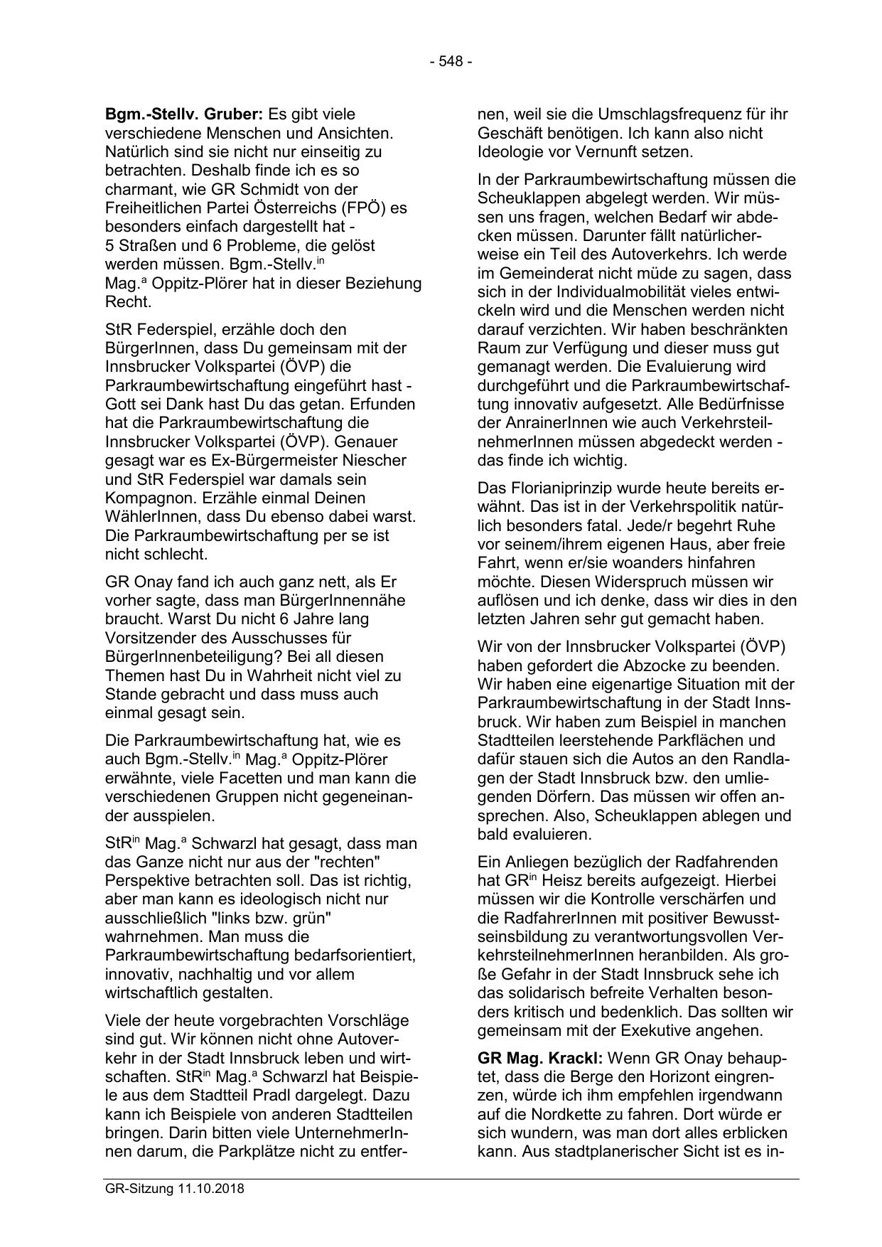 bringen. Darin bitten viele UnternehmerInnen darum, die Parkplätze nicht zu entferGR-Sitzung 11.10.2018