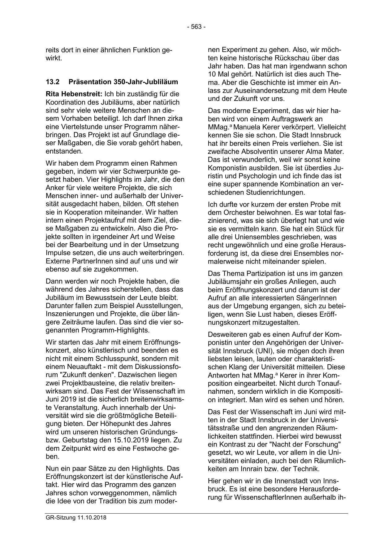 Desweiteren gab es einen Aufruf der Komponistin unter den Angehörigen der Universität Innsbruck (UNI), sie mögen doch ihren