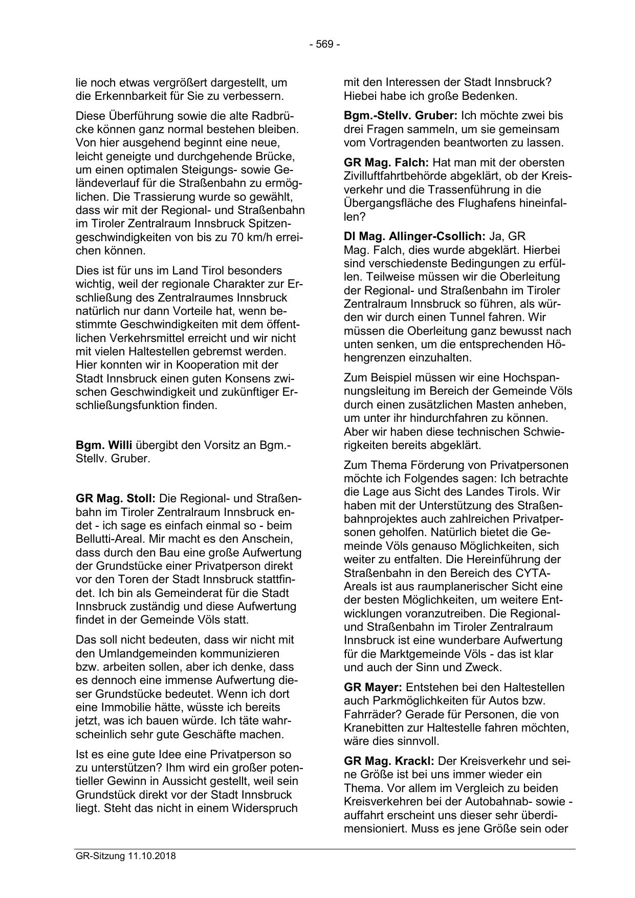 GR Mag. Stoll: Die Regional- und Straßenbahn im Tiroler Zentralraum Innsbruck endet - ich sage es einfach einmal so - beim