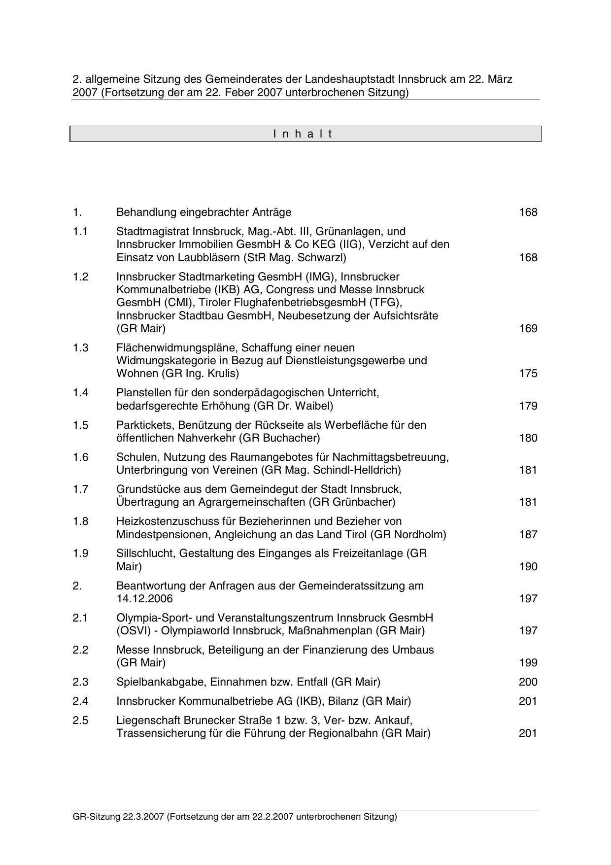 GR-Sitzung 22.3.2007 (Fortsetzung der am 22.2.2007 unterbrochenen Sitzung)