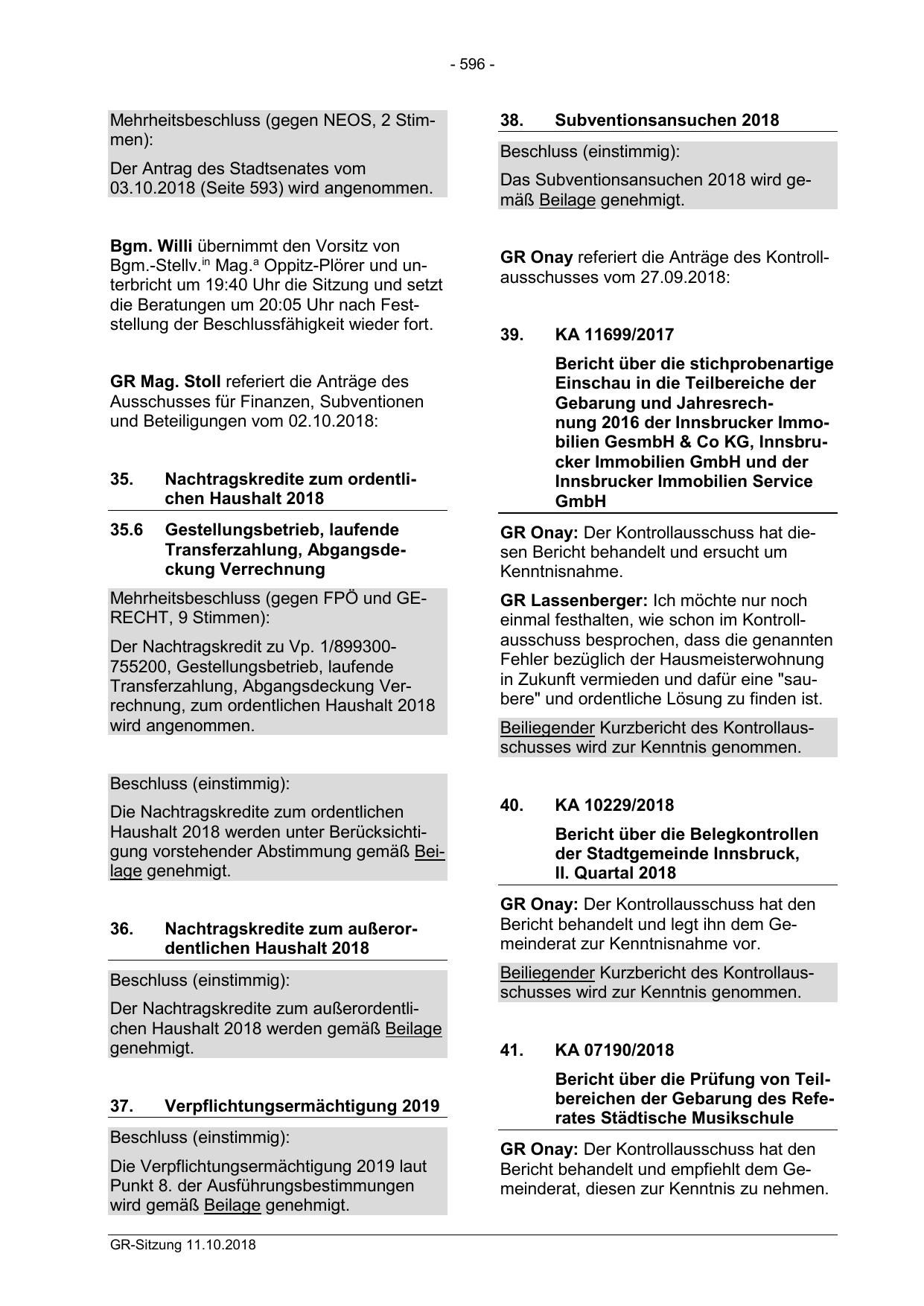 GR Onay referiert die Anträge des Kontrollausschusses vom 27.09.2018: