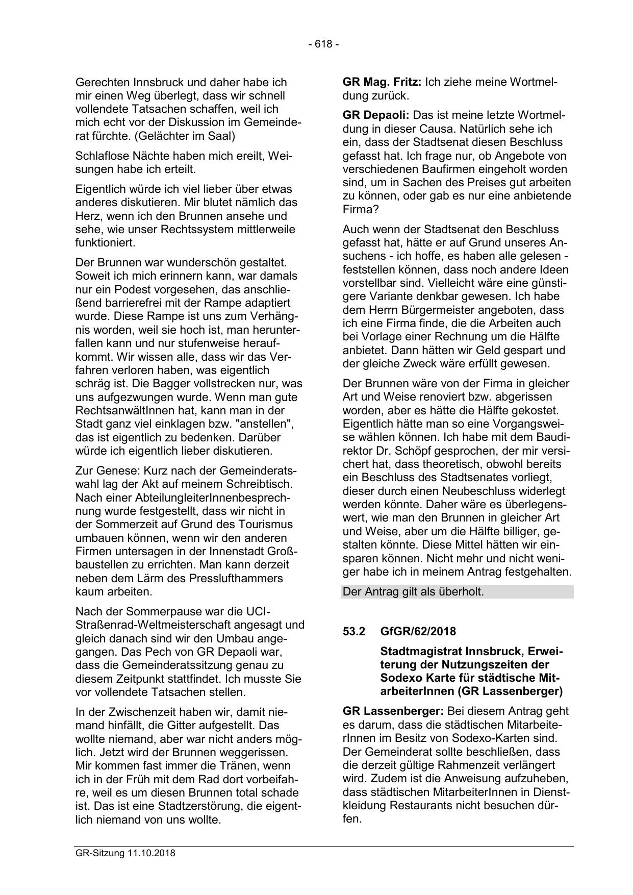 GR Depaoli: Das ist meine letzte Wortmeldung in dieser Causa. Natürlich sehe ich