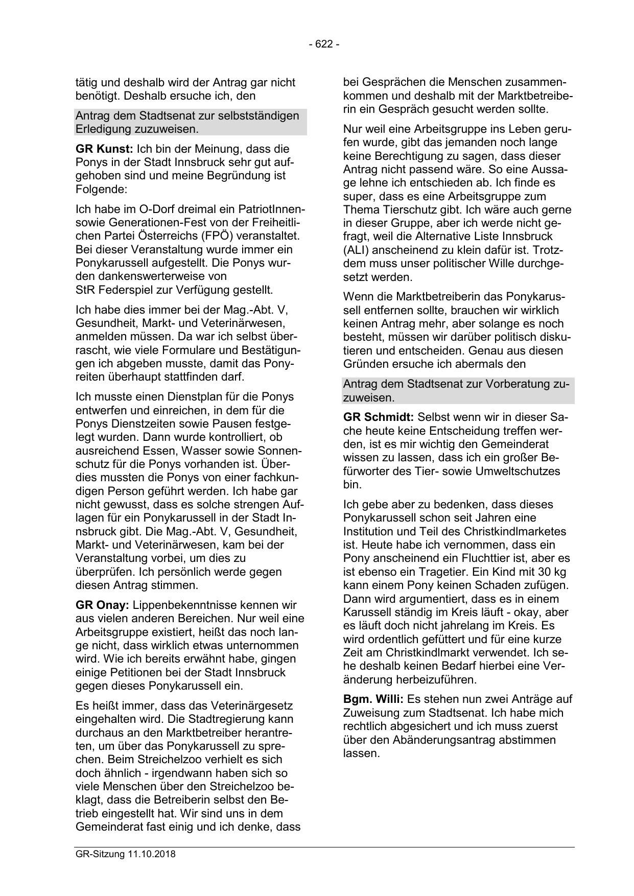 nicht gewusst, dass es solche strengen Auflagen für ein Ponykarussell in der Stadt Innsbruck gibt. Die Mag.-Abt. V, Gesundheit,