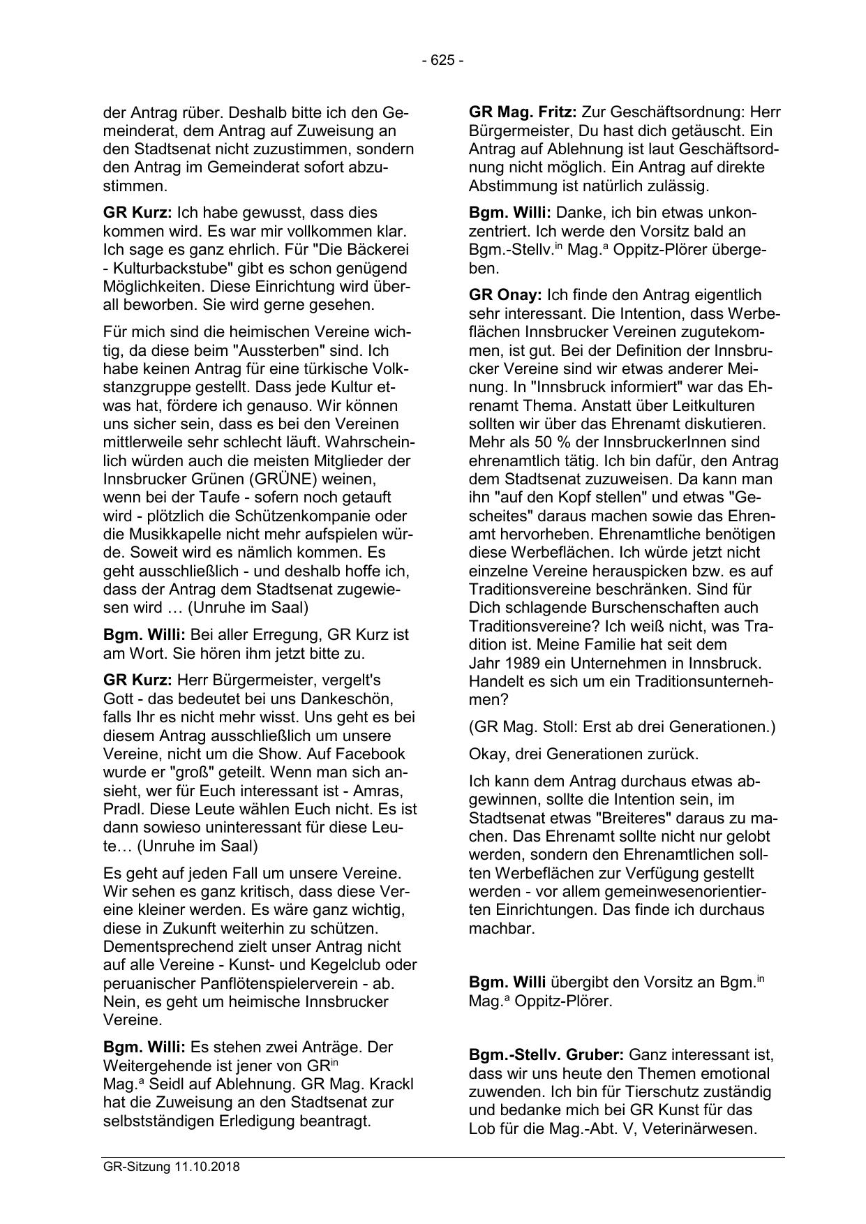 Bgm. Willi: Danke, ich bin etwas unkonzentriert. Ich werde den Vorsitz bald an