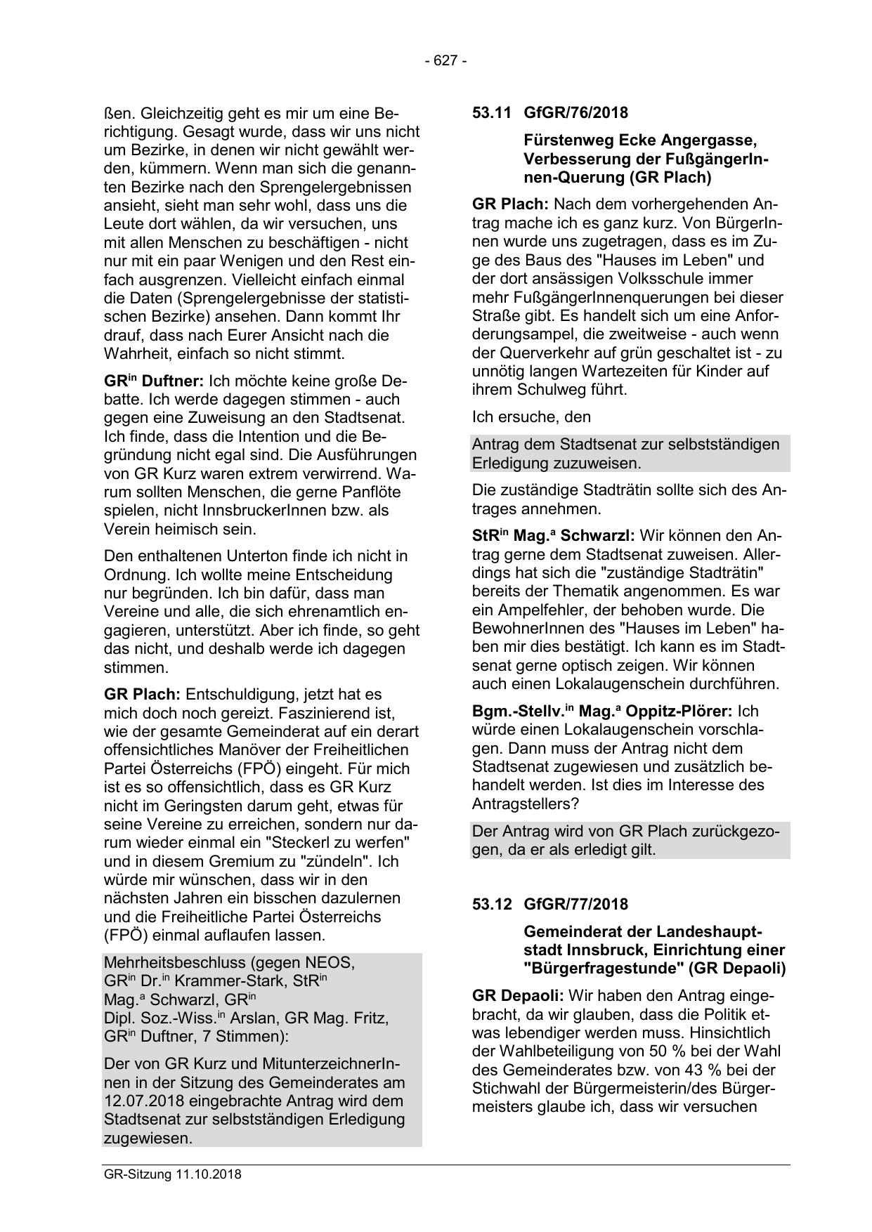 Stadtsenat zugewiesen und zusätzlich behandelt werden. Ist dies im Interesse des