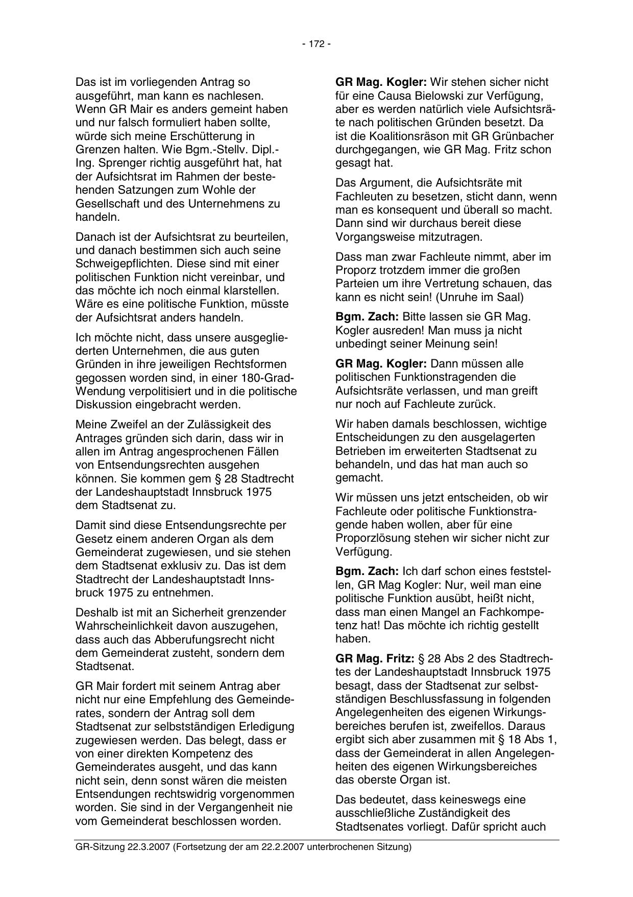 GR-Sitzung 22.3.2007 (Fortsetzung der am 22.2.2007 unterbrochenen Sitzung)