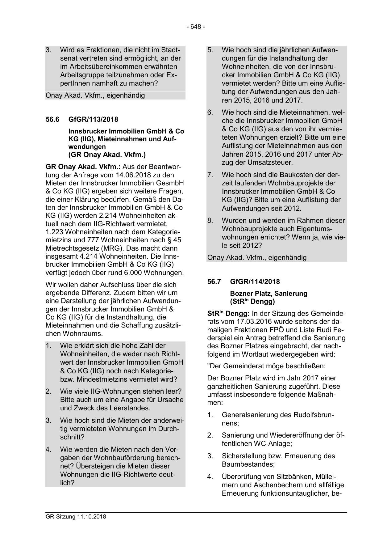 StRin Dengg: In der Sitzung des Gemeinderats vom 17.03.2016 wurde seitens der damaligen Fraktionen FPÖ und Liste Rudi Federspiel ein Antrag betreffend die Sanierung