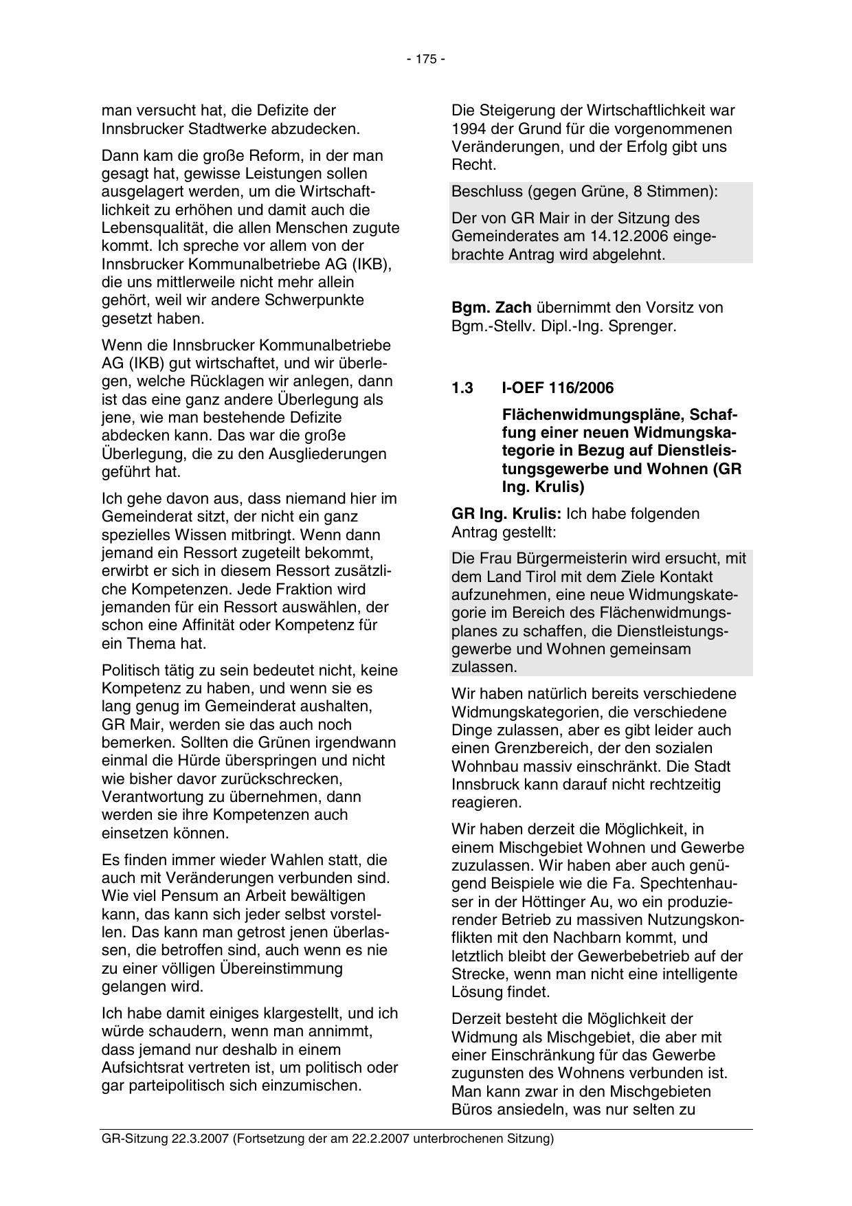 GR-Sitzung 22.3.2007 (Fortsetzung der am 22.2.2007 unterbrochenen Sitzung)