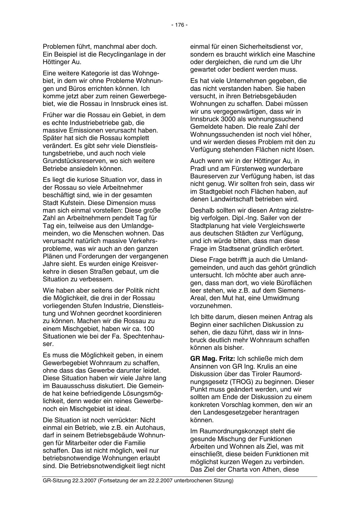GR-Sitzung 22.3.2007 (Fortsetzung der am 22.2.2007 unterbrochenen Sitzung)