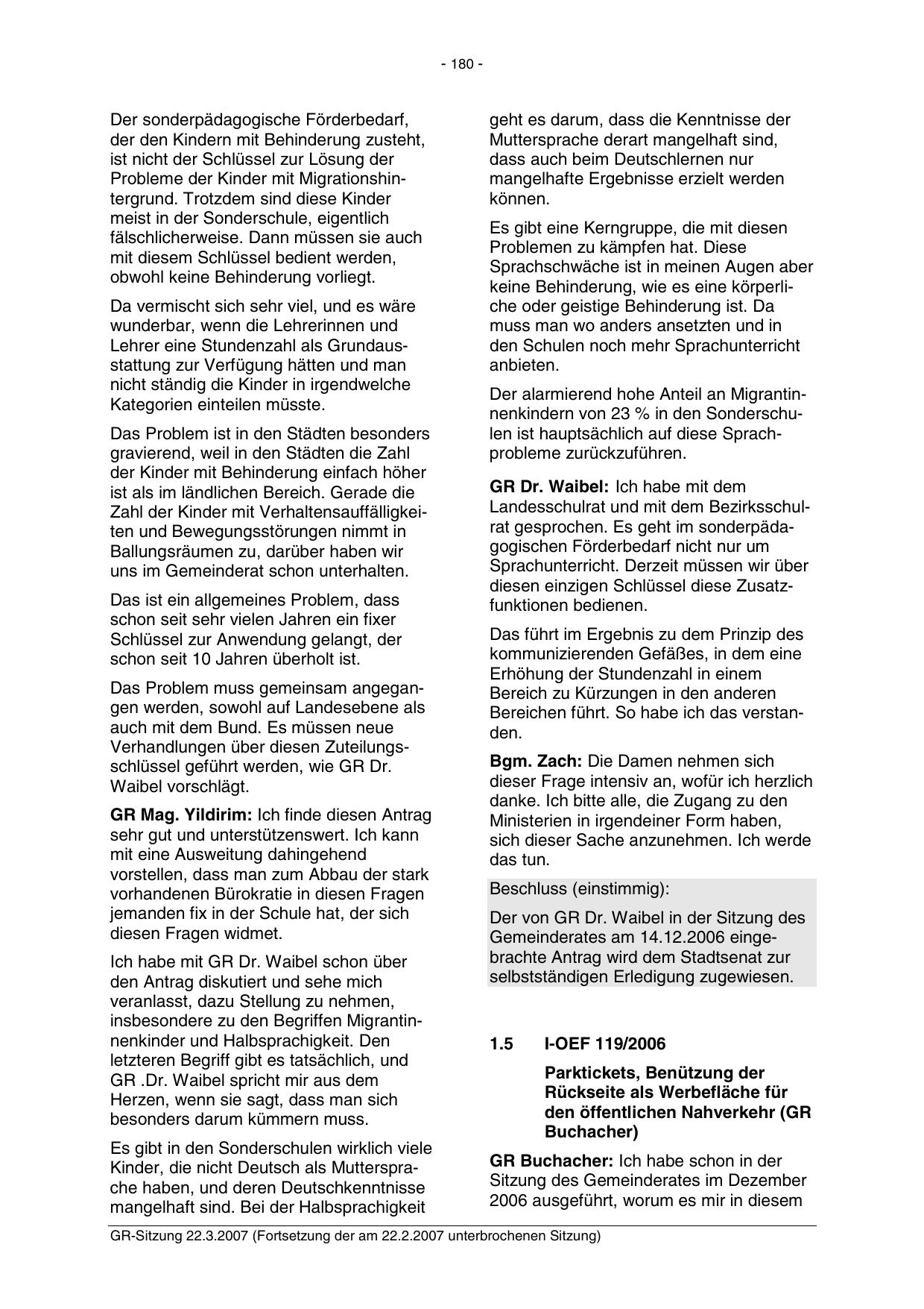 GR-Sitzung 22.3.2007 (Fortsetzung der am 22.2.2007 unterbrochenen Sitzung)