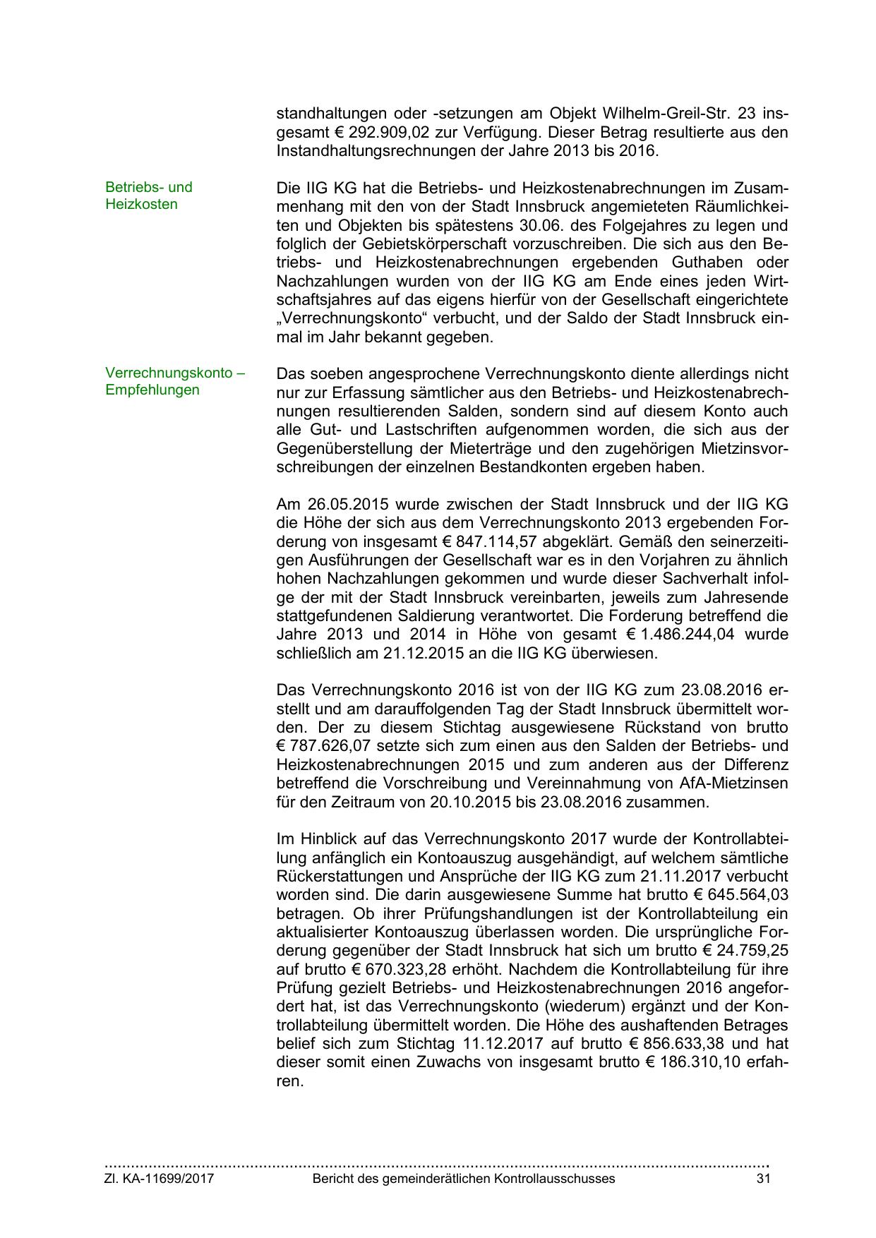 Das Verrechnungskonto 2016 ist von der IIG KG zum 23.08.2016 erstellt und am darauffolgenden Tag der Stadt Innsbruck übermittelt worden. Der zu diesem Stichtag ausgewiesene Rückstand von brutto