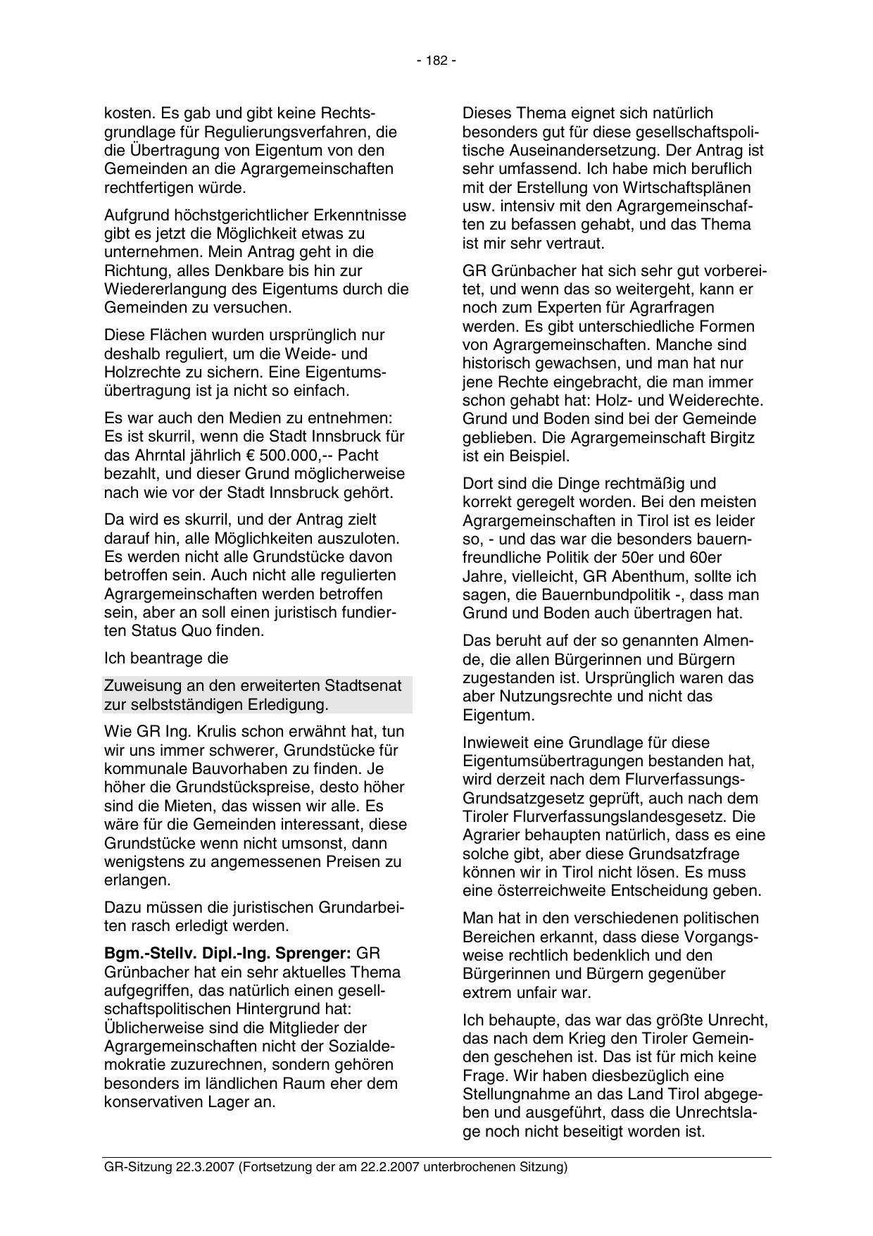 GR-Sitzung 22.3.2007 (Fortsetzung der am 22.2.2007 unterbrochenen Sitzung)