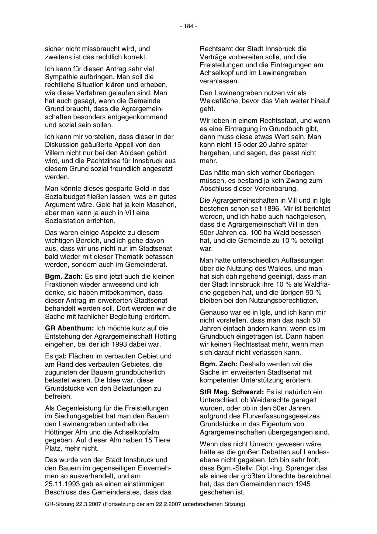 GR-Sitzung 22.3.2007 (Fortsetzung der am 22.2.2007 unterbrochenen Sitzung)