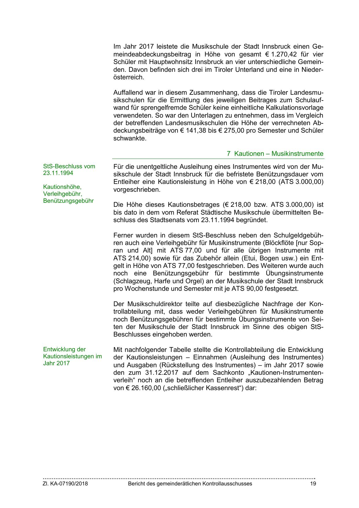 noch Benützungsgebühren für bestimmte Übungsinstrumente von Seiten der Musikschule der Stadt Innsbruck im Sinne des obigen StSBeschlusses eingehoben werden.