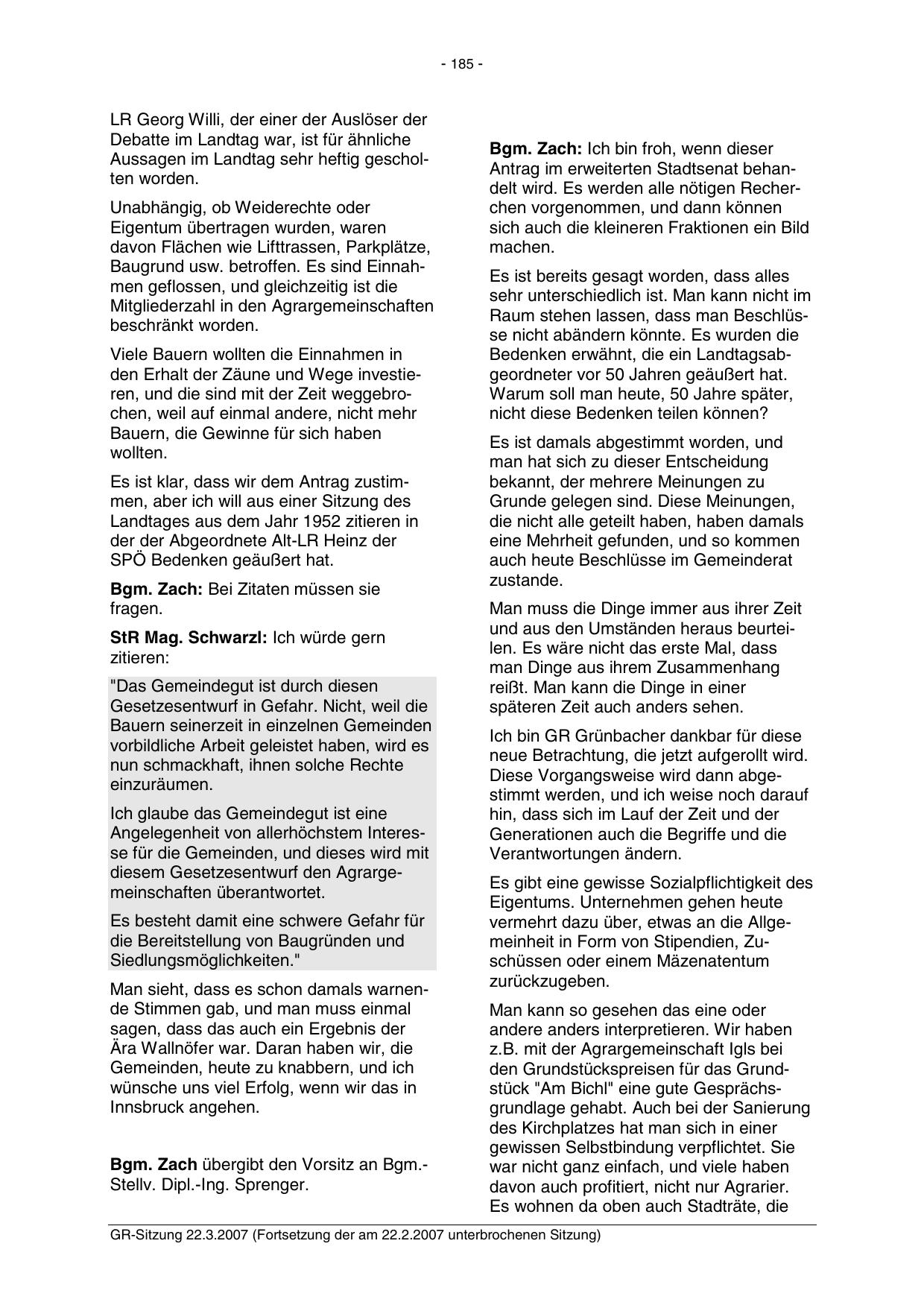 GR-Sitzung 22.3.2007 (Fortsetzung der am 22.2.2007 unterbrochenen Sitzung)