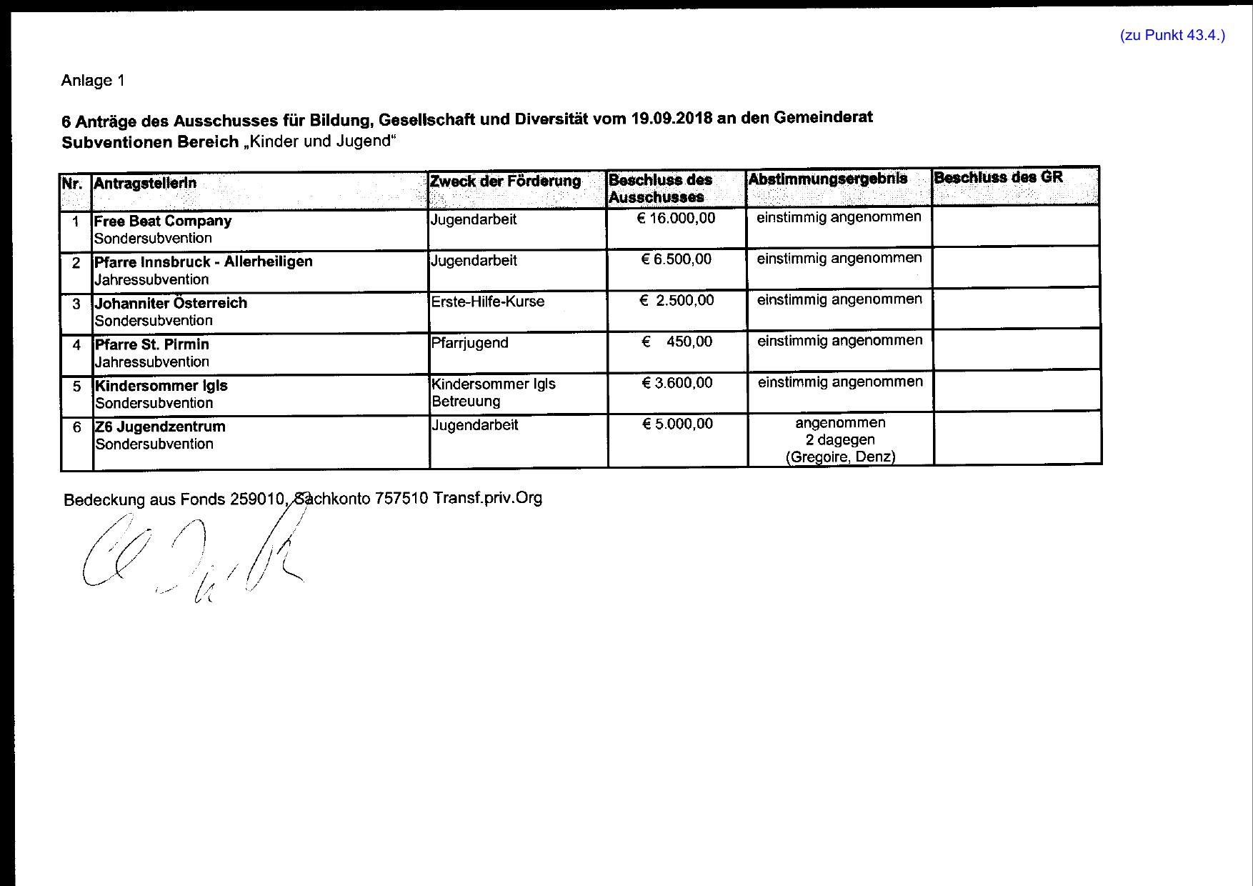 6 Anträge des Ausschusses für Bildung, Gesellschaft und Diversität vom 19.09.2018 an den Gemeinderat