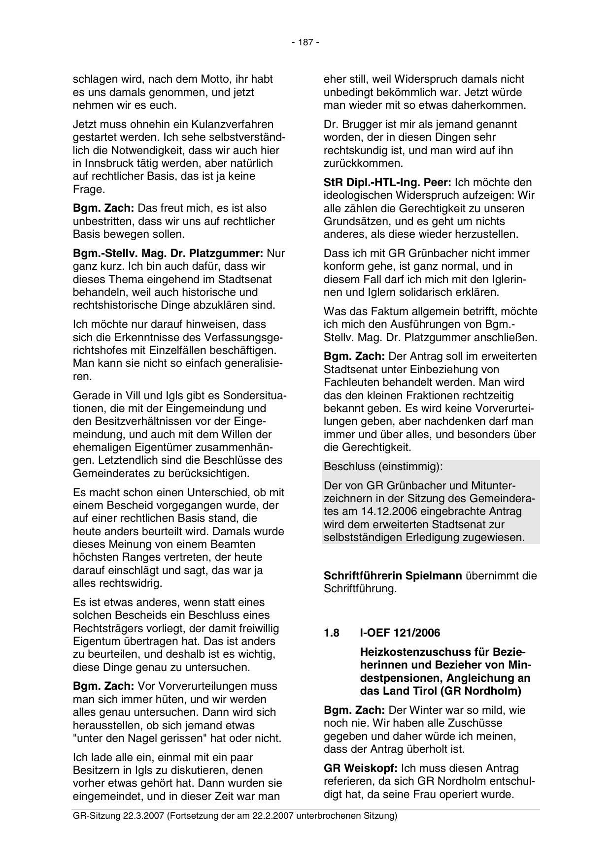 GR-Sitzung 22.3.2007 (Fortsetzung der am 22.2.2007 unterbrochenen Sitzung)