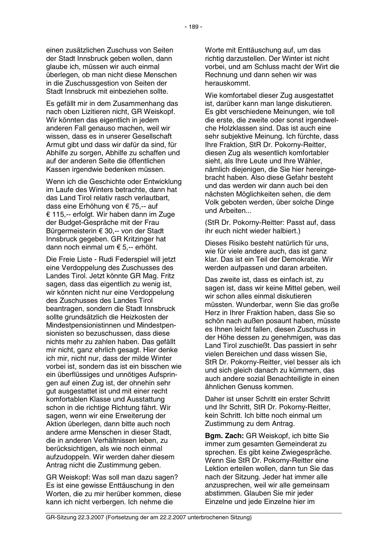 GR-Sitzung 22.3.2007 (Fortsetzung der am 22.2.2007 unterbrochenen Sitzung)