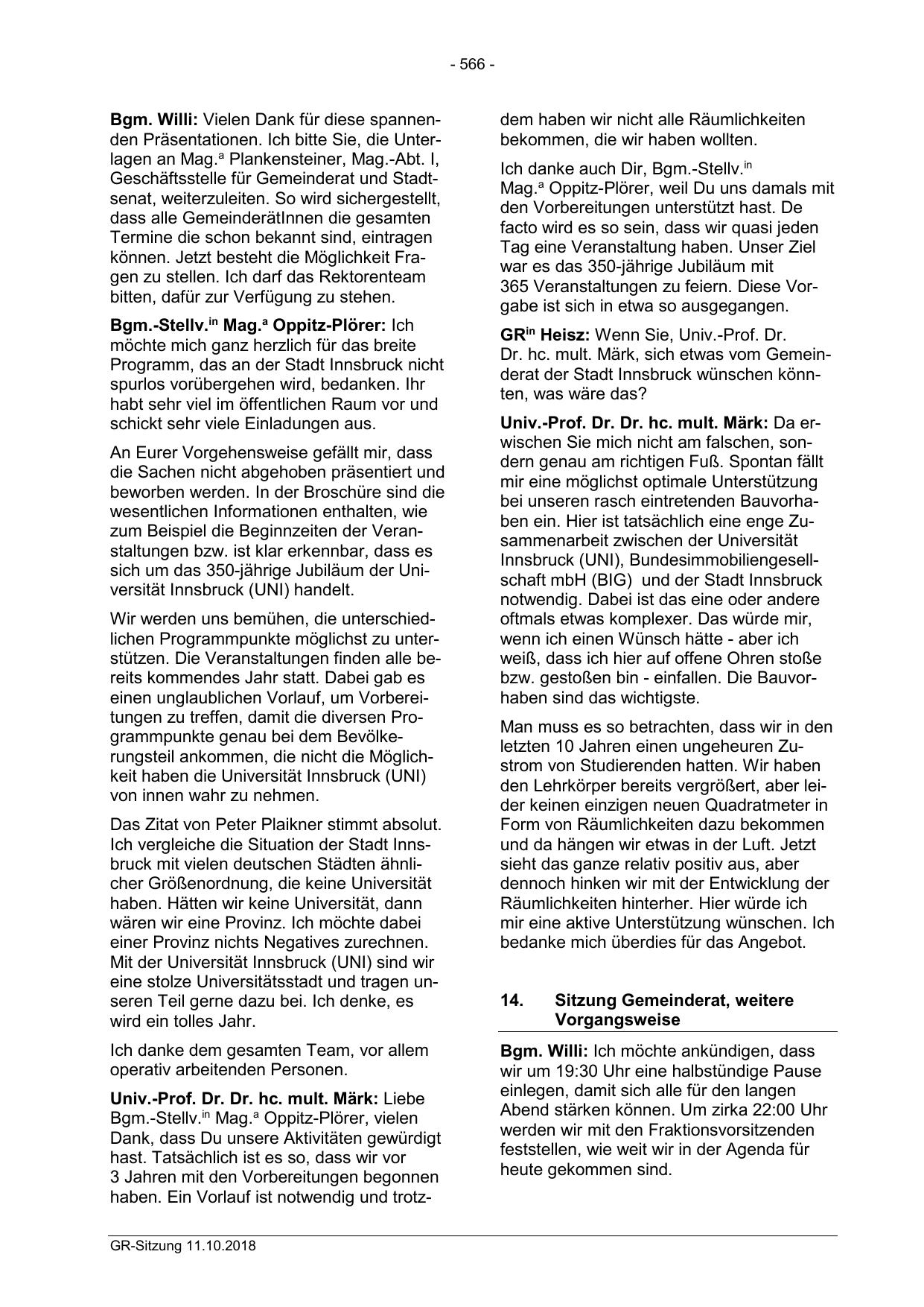 haben. Ein Vorlauf ist notwendig und trotzGR-Sitzung 11.10.2018