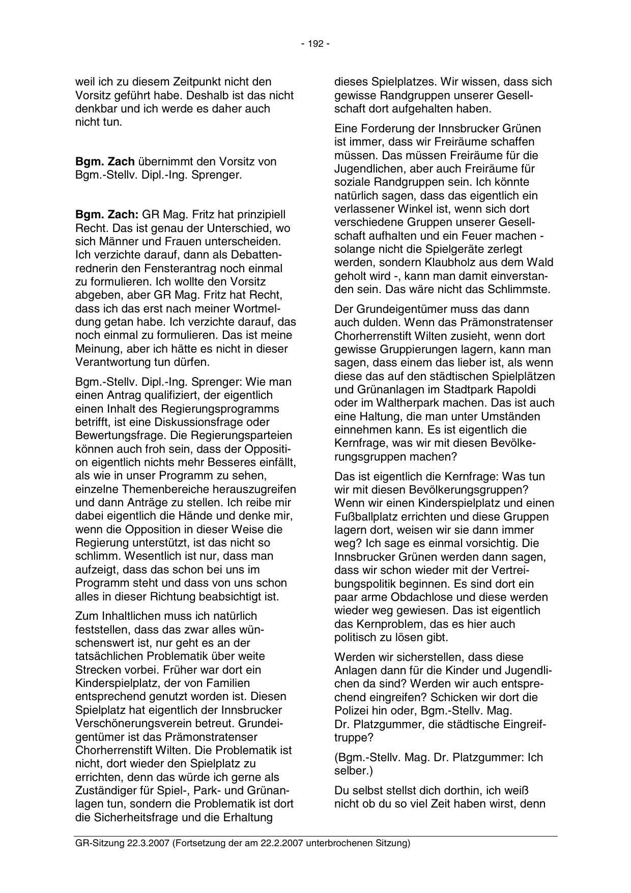 GR-Sitzung 22.3.2007 (Fortsetzung der am 22.2.2007 unterbrochenen Sitzung)