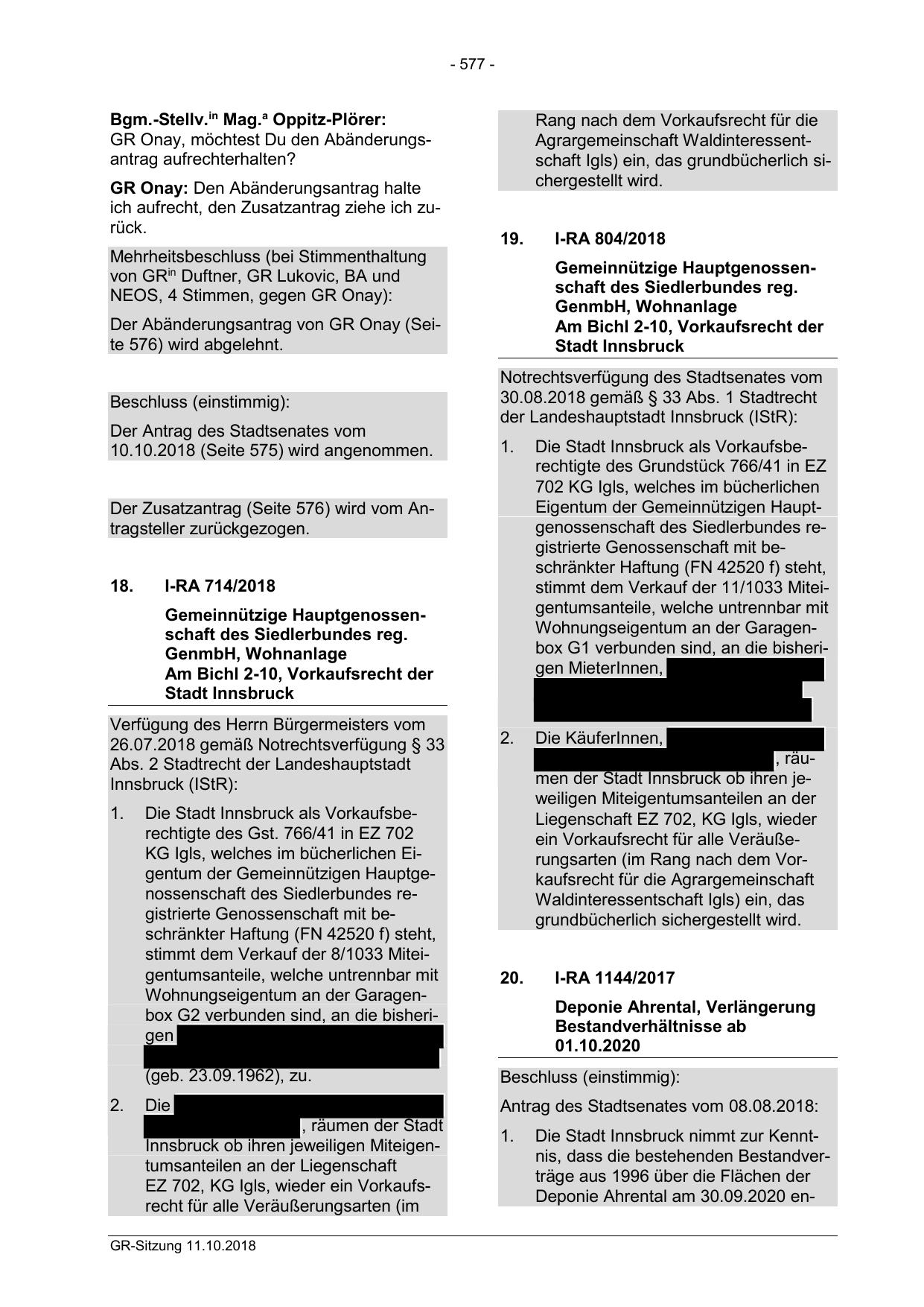 Der Zusatzantrag (Seite 576) wird vom Antragsteller zurückgezogen.