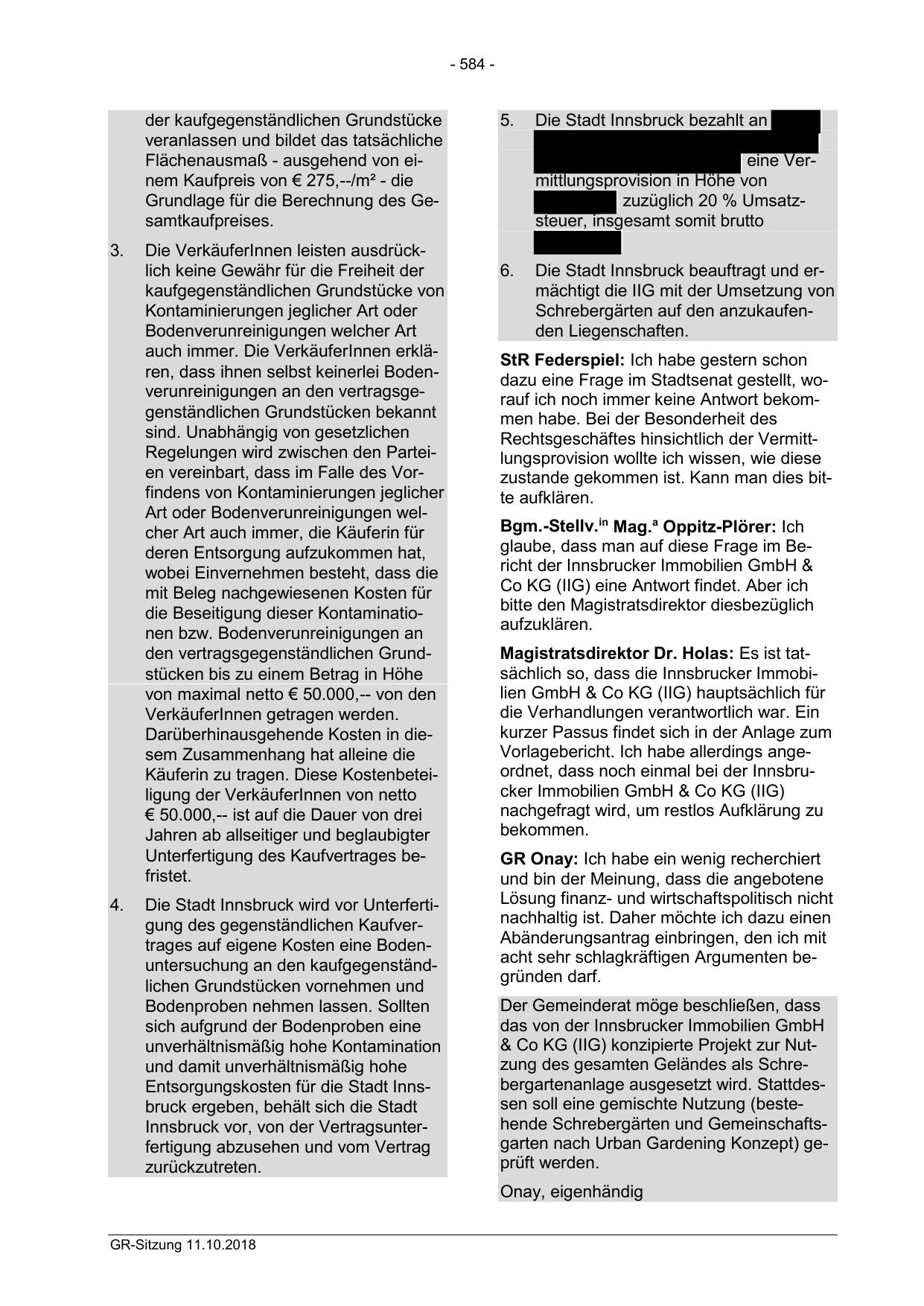 Vorlagebericht. Ich habe allerdings angeordnet, dass noch einmal bei der Innsbrucker Immobilien GmbH & Co KG (IIG)