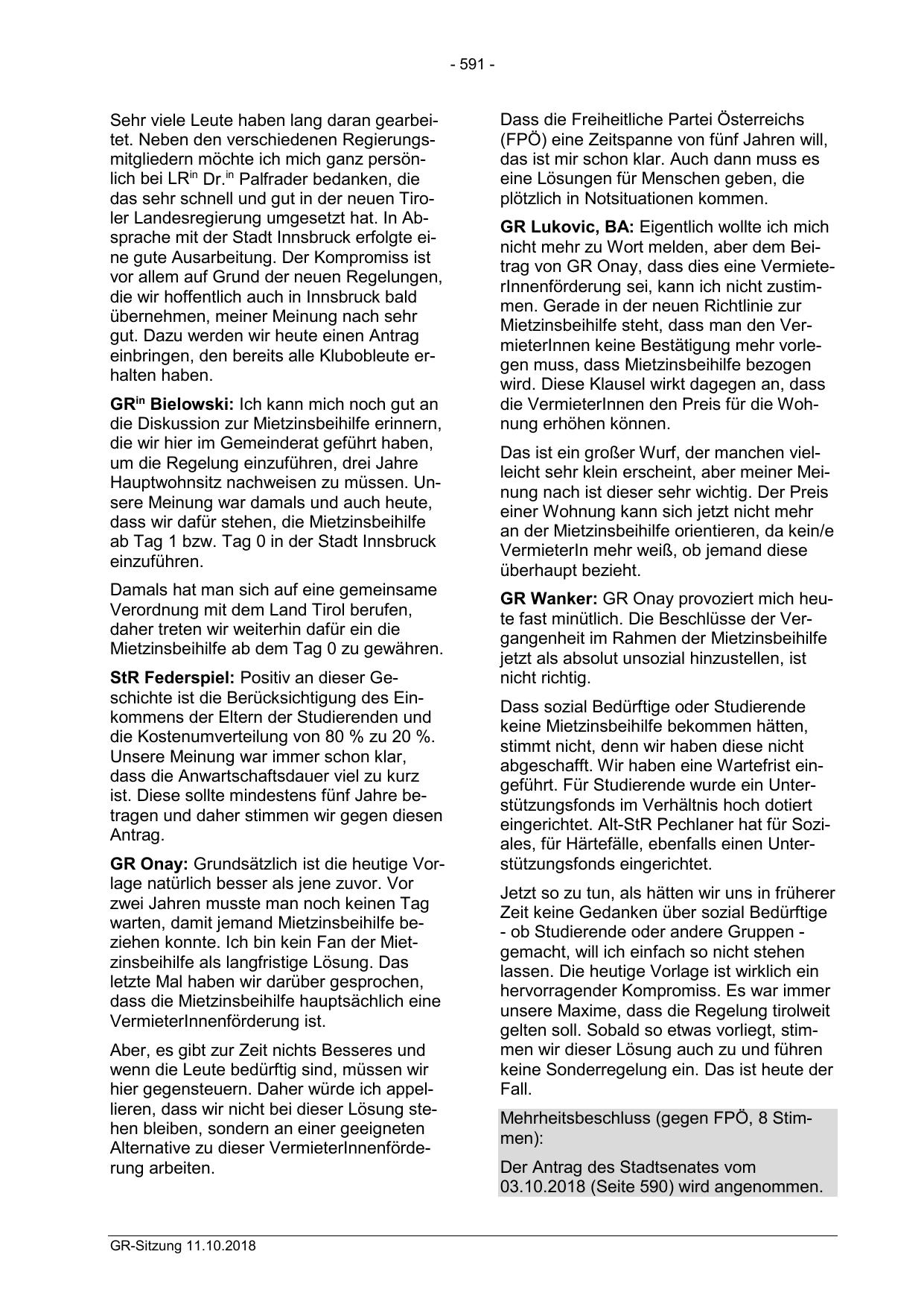 GR Wanker: GR Onay provoziert mich heute fast minütlich. Die Beschlüsse der Vergangenheit im Rahmen der Mietzinsbeihilfe