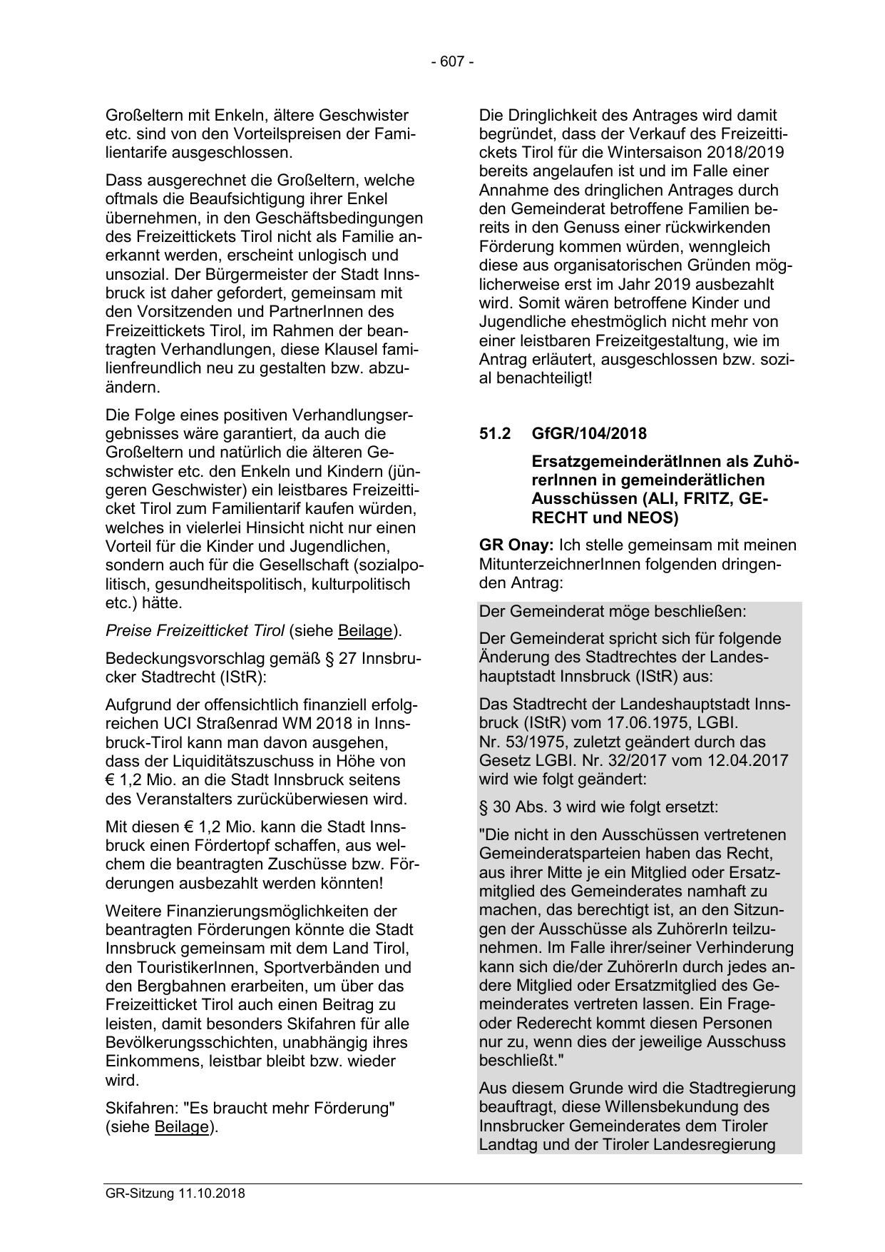 Änderung des Stadtrechtes der Landeshauptstadt Innsbruck (IStR) aus: