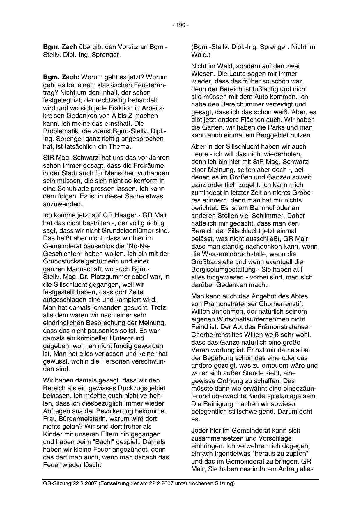 GR-Sitzung 22.3.2007 (Fortsetzung der am 22.2.2007 unterbrochenen Sitzung)