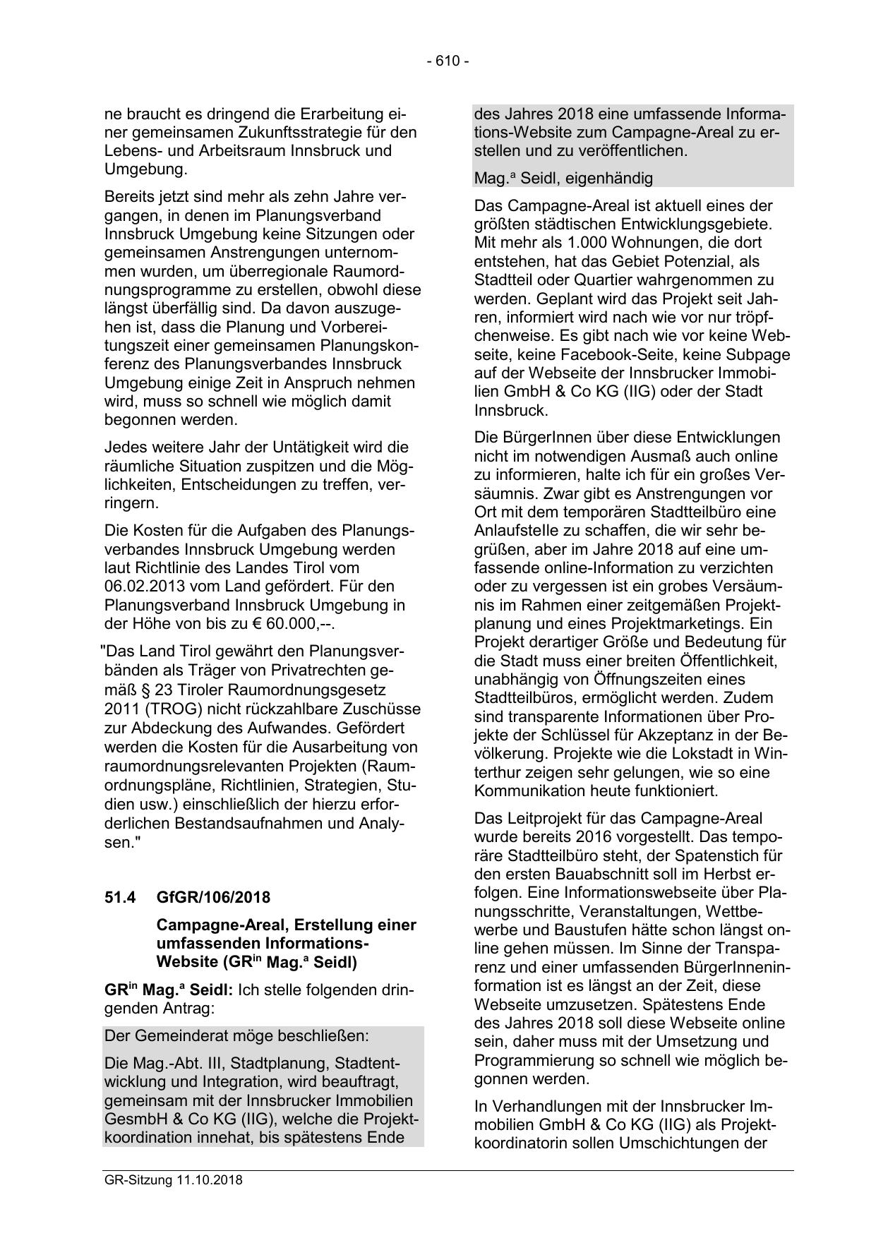längst überfällig sind. Da davon auszugehen ist, dass die Planung und Vorbereitungszeit einer gemeinsamen Planungskonferenz des Planungsverbandes Innsbruck