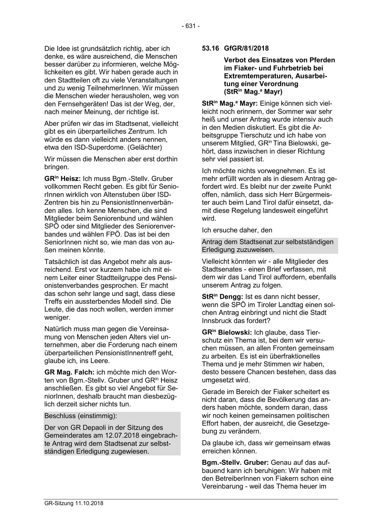 Gemeinderates am 12.07.2018 eingebrachte Antrag wird dem Stadtsenat zur selbstständigen Erledigung zugewiesen.