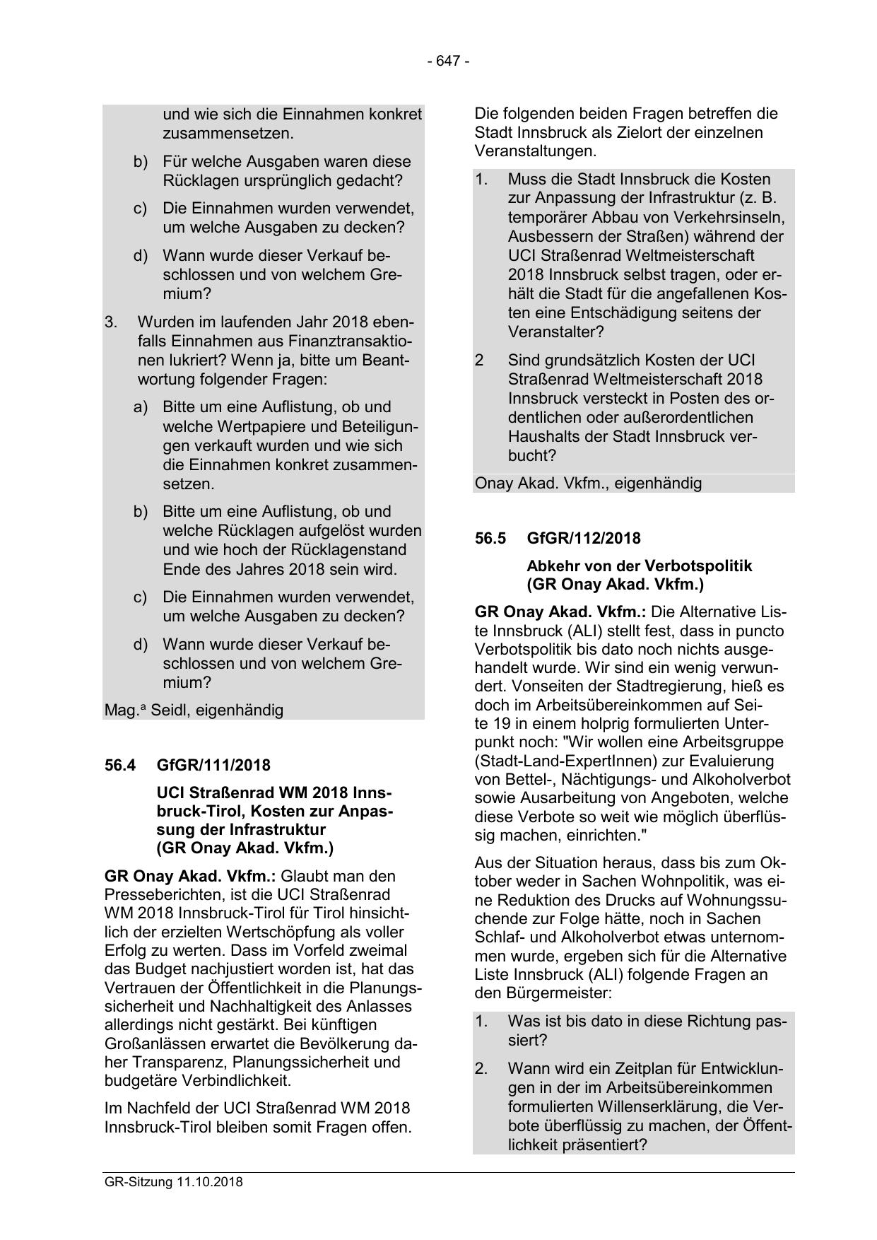 GR Onay Akad. Vkfm.: Die Alternative Liste Innsbruck (ALI) stellt fest, dass in puncto