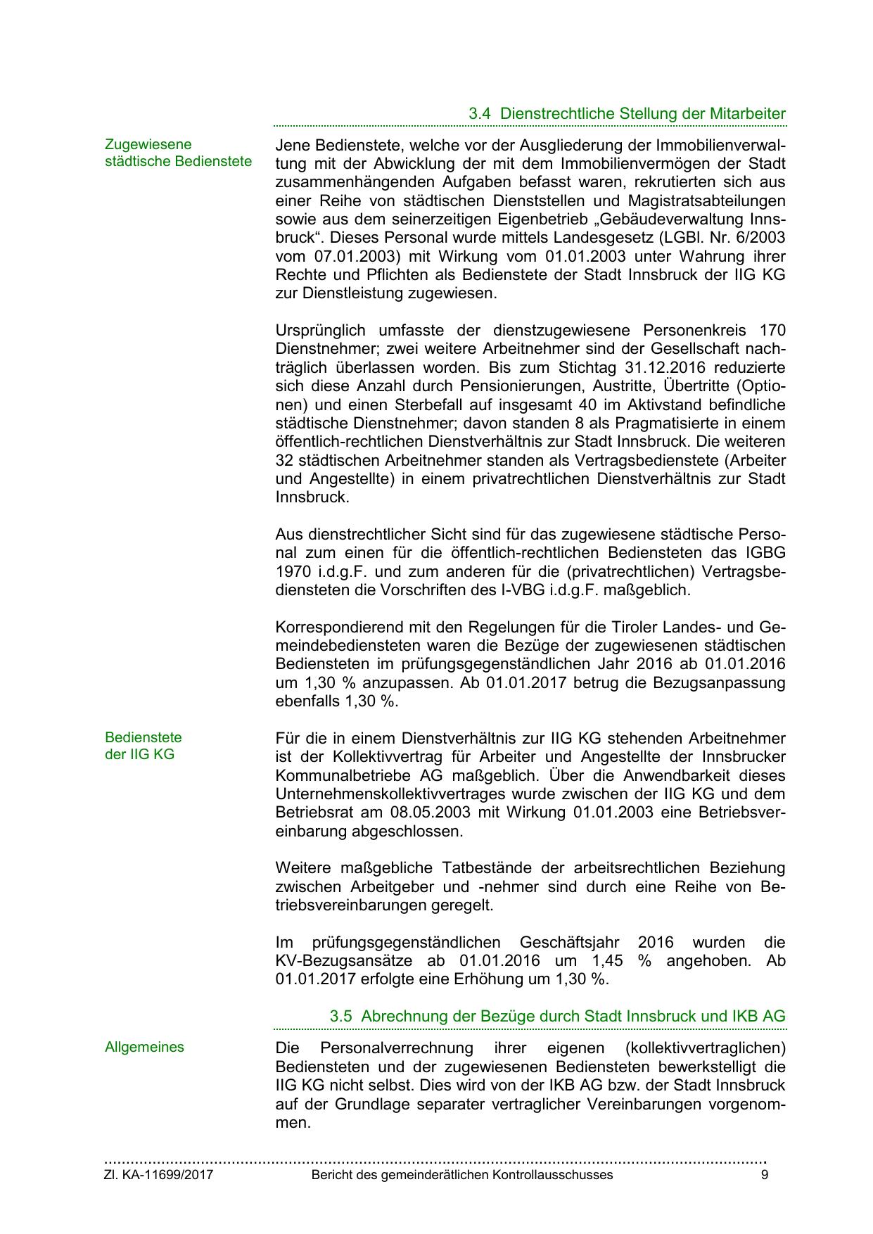 3.5 Abrechnung der Bezüge durch Stadt Innsbruck und IKB AG