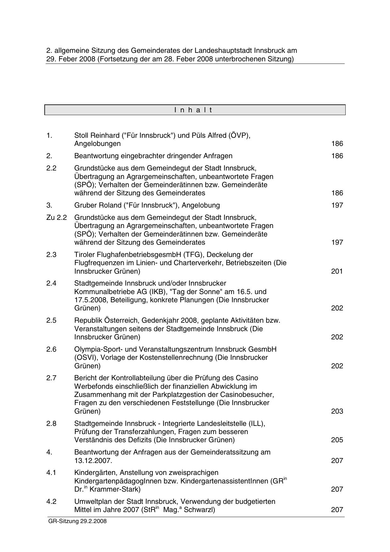2. allgemeine Sitzung des Gemeinderates der Landeshauptstadt Innsbruck am