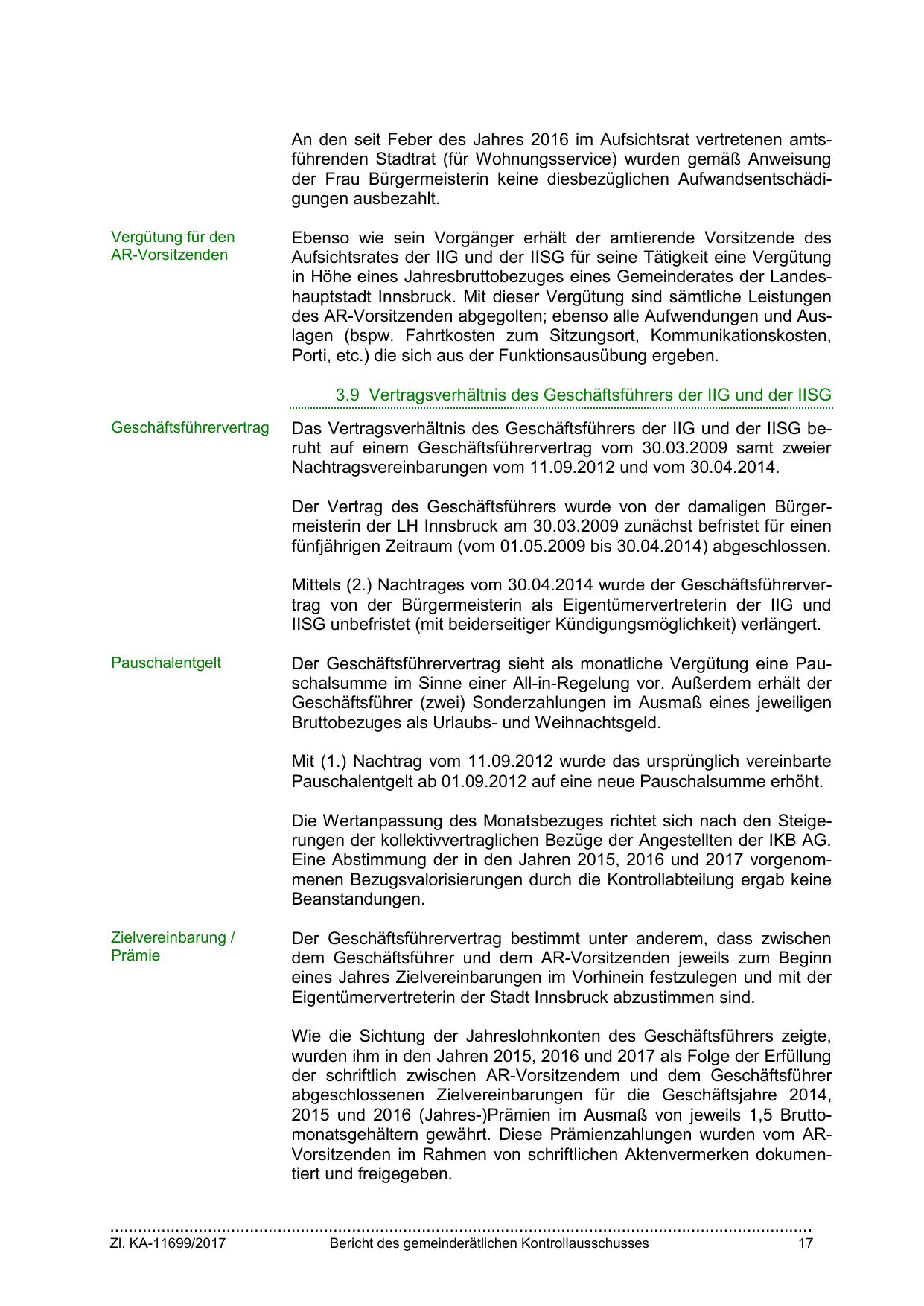 in Höhe eines Jahresbruttobezuges eines Gemeinderates der Landeshauptstadt Innsbruck. Mit dieser Vergütung sind sämtliche Leistungen