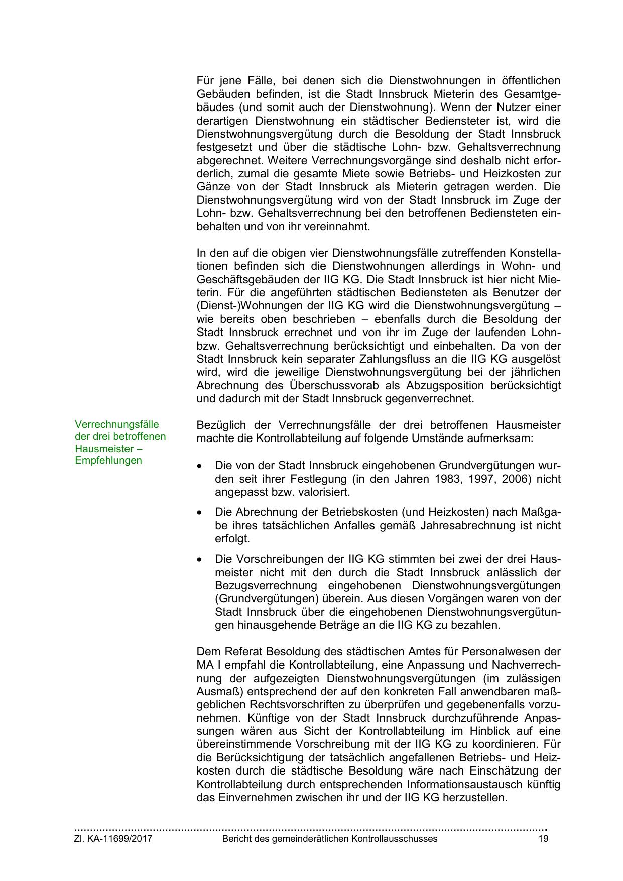 Stadt Innsbruck über die eingehobenen Dienstwohnungsvergütungen hinausgehende Beträge an die IIG KG zu bezahlen.