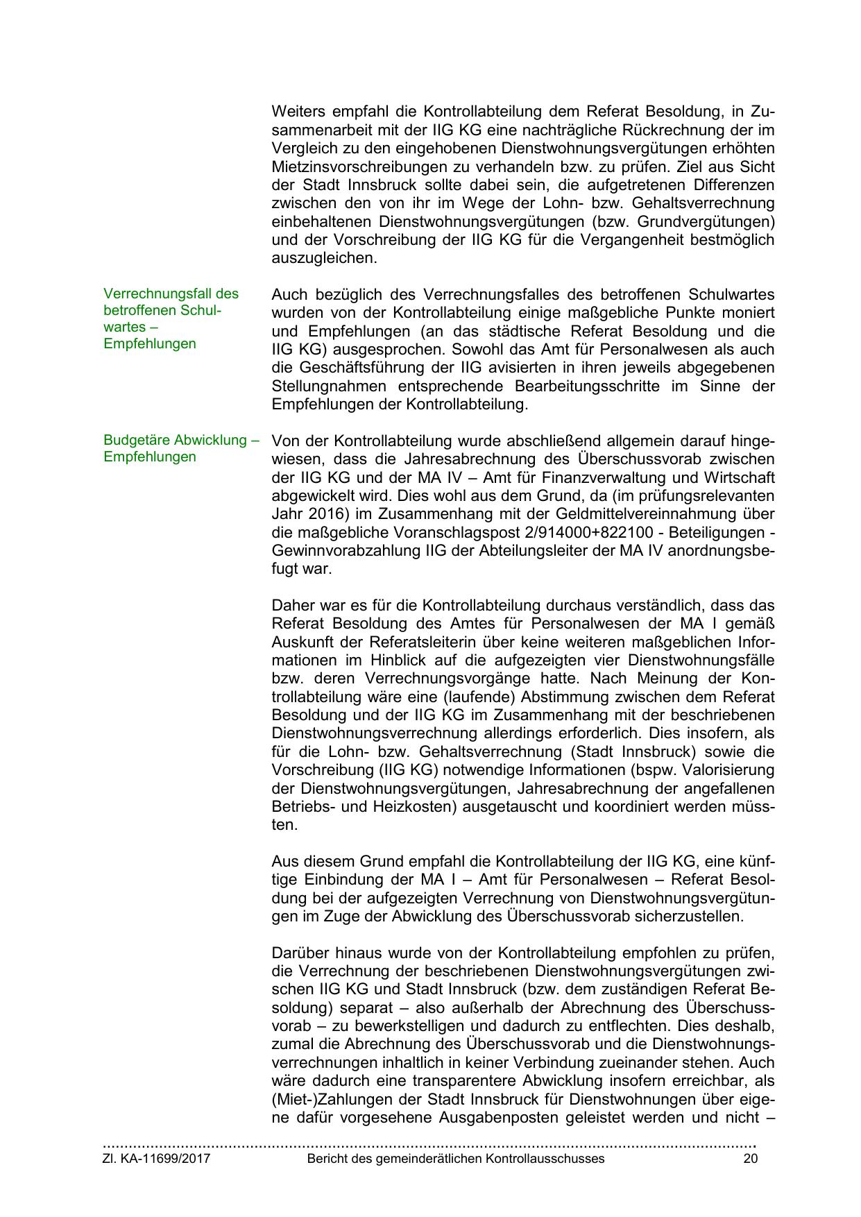 (Miet-)Zahlungen der Stadt Innsbruck für Dienstwohnungen über eigene dafür vorgesehene Ausgabenposten geleistet werden und nicht –