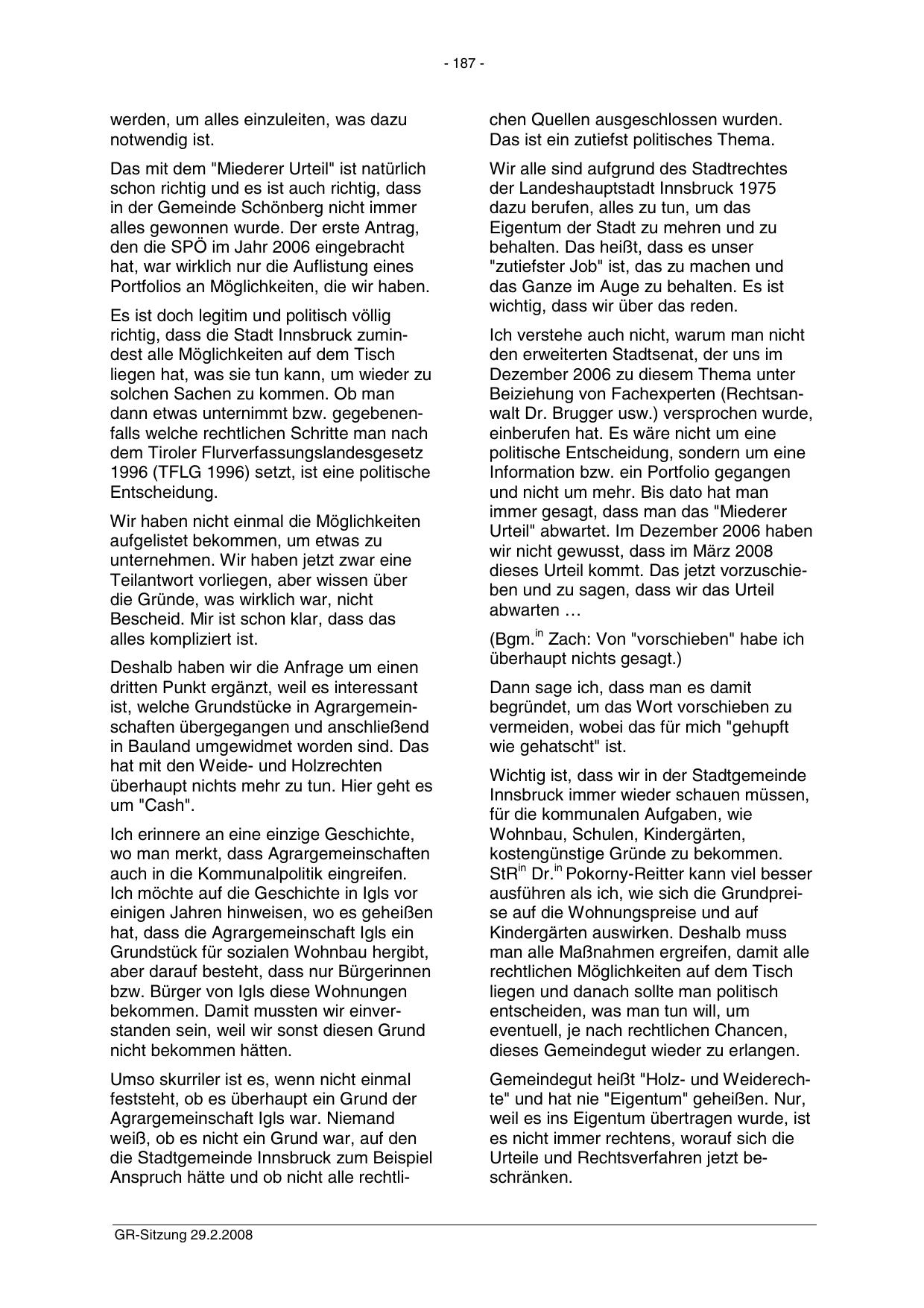 richtig, dass die Stadt Innsbruck zumindest alle Möglichkeiten auf dem Tisch