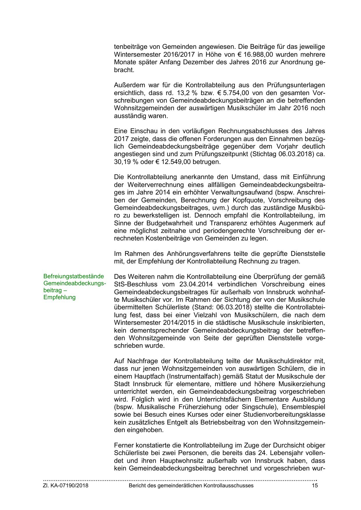 Gemeindeabdeckungsbeitrages für außerhalb von Innsbruck wohnhafte Musikschüler vor. Im Rahmen der Sichtung der von der Musikschule
