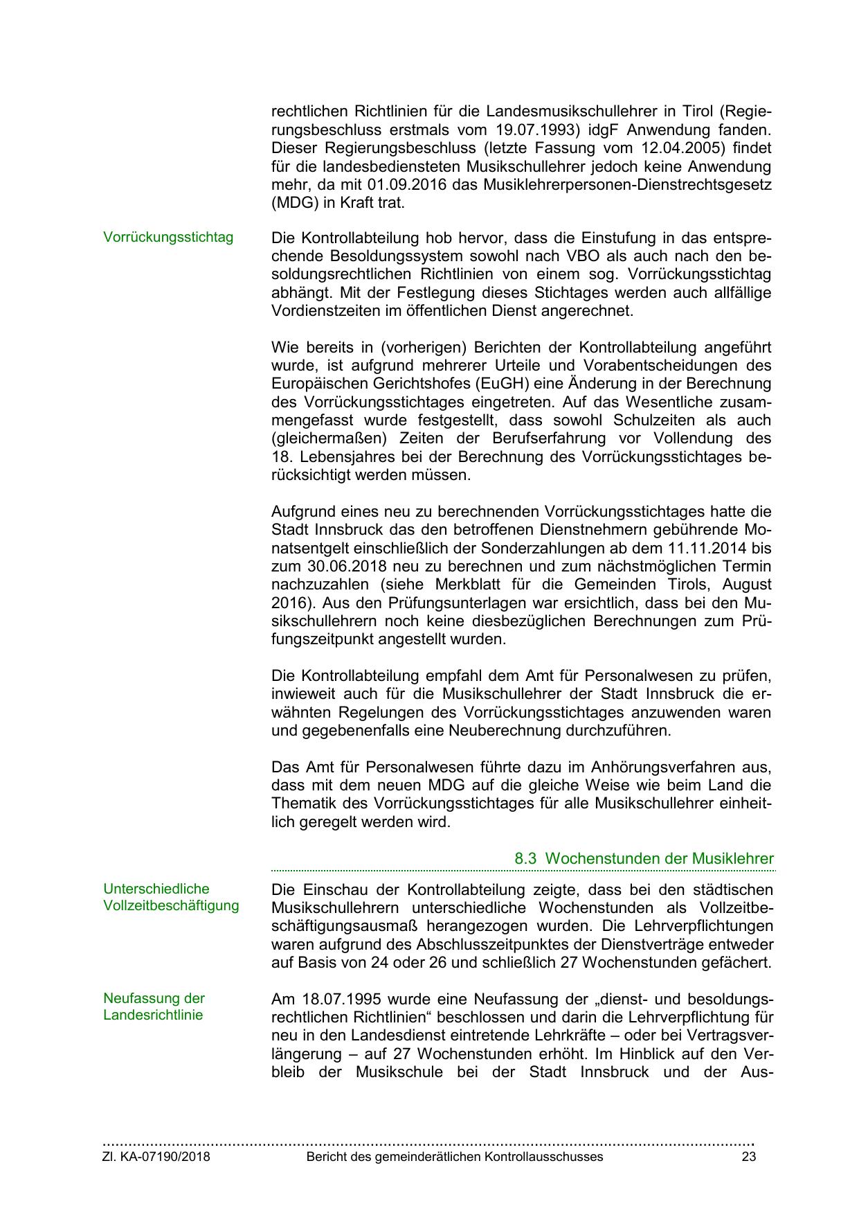inwieweit auch für die Musikschullehrer der Stadt Innsbruck die erwähnten Regelungen des Vorrückungsstichtages anzuwenden waren