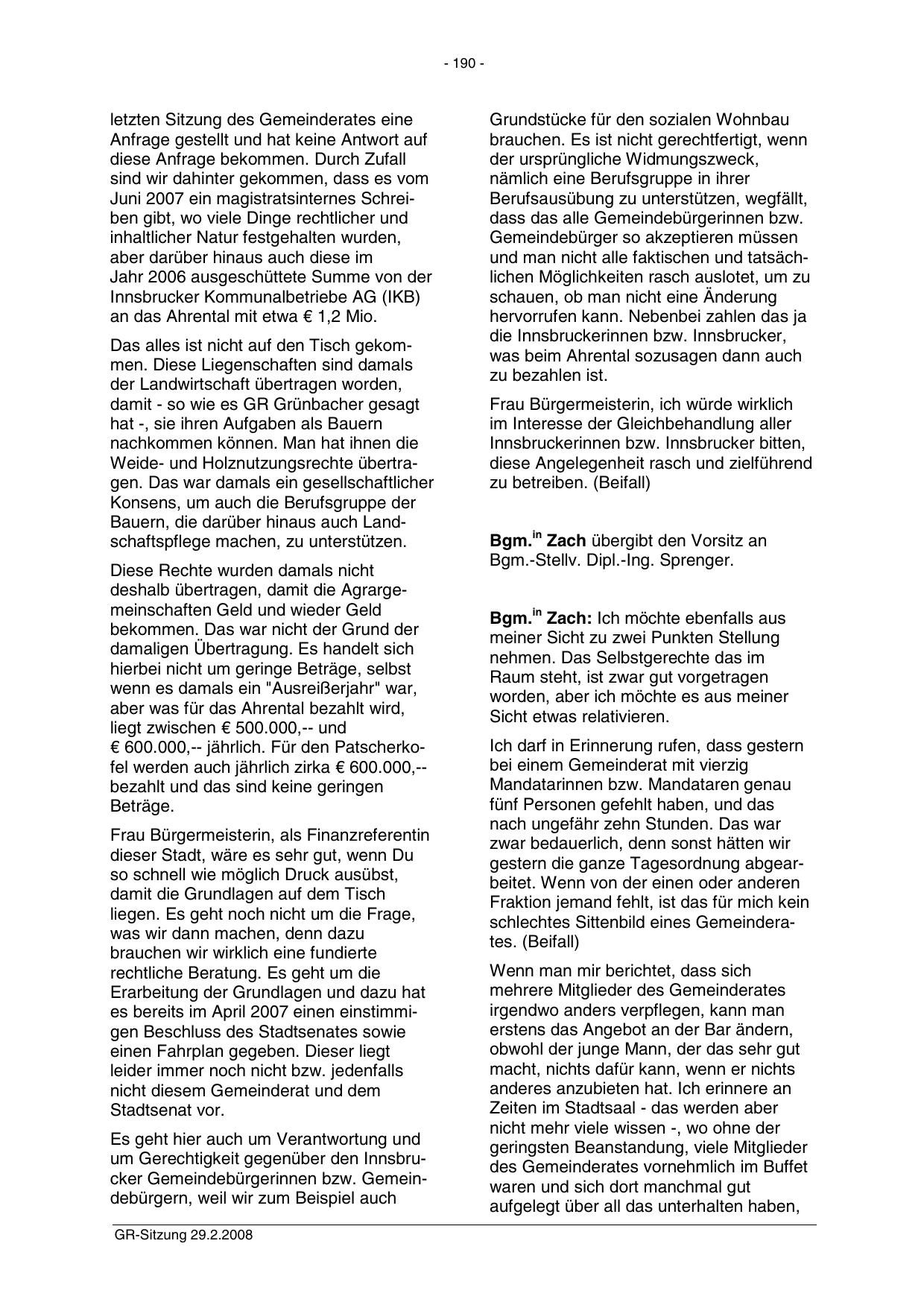 um Gerechtigkeit gegenüber den Innsbrucker Gemeindebürgerinnen bzw. Gemeindebürgern, weil wir zum Beispiel auch
