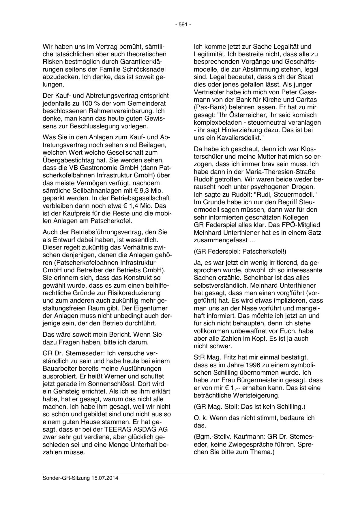 Sonder-GR-Sitzung 15.07.2014