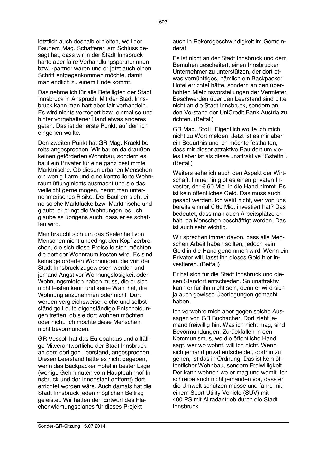 Bauherr, Mag. Schafferer, am Schluss gesagt hat, dass wir in der Stadt Innsbruck