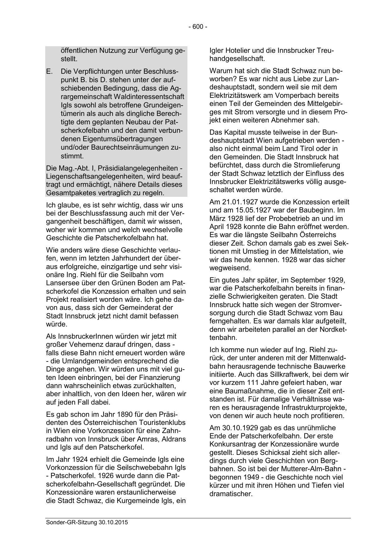 Sonder-GR-Sitzung 30.10.2015