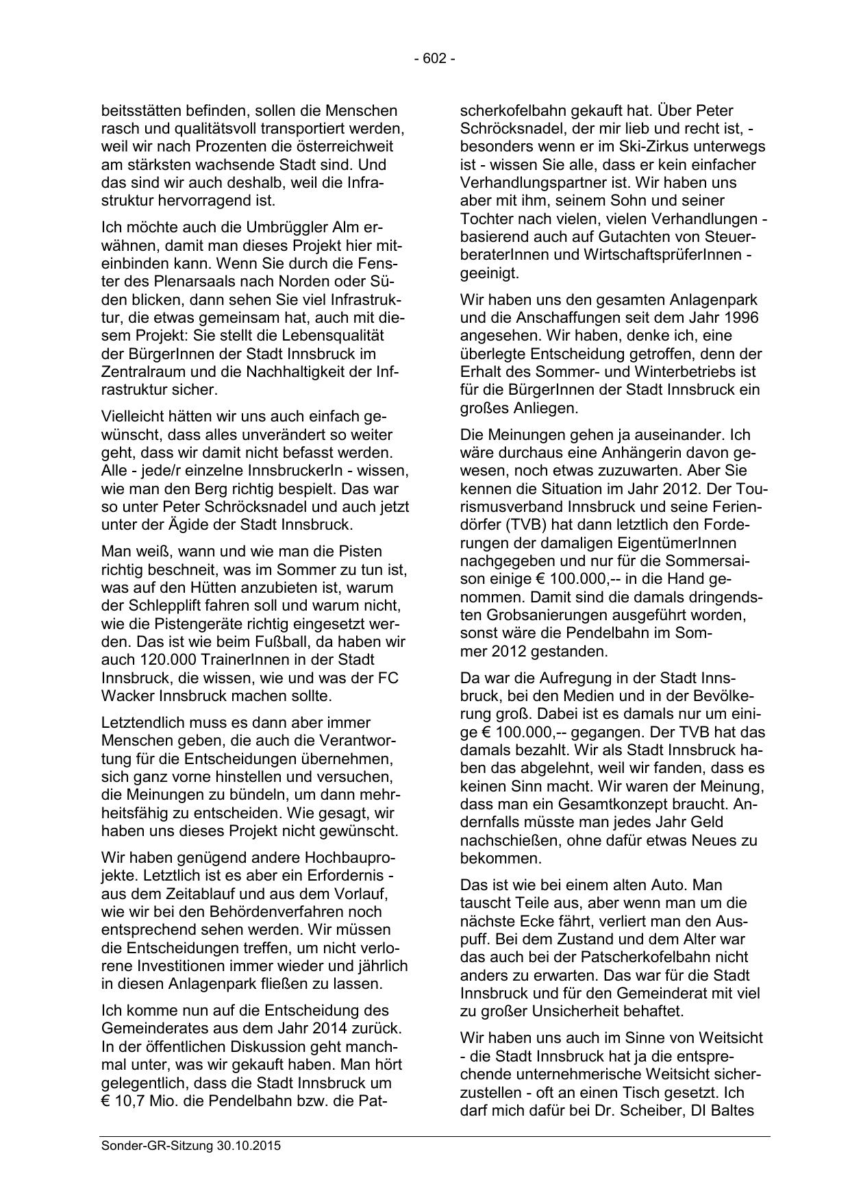 € 10,7 Mio. die Pendelbahn bzw. die PatSonder-GR-Sitzung 30.10.2015