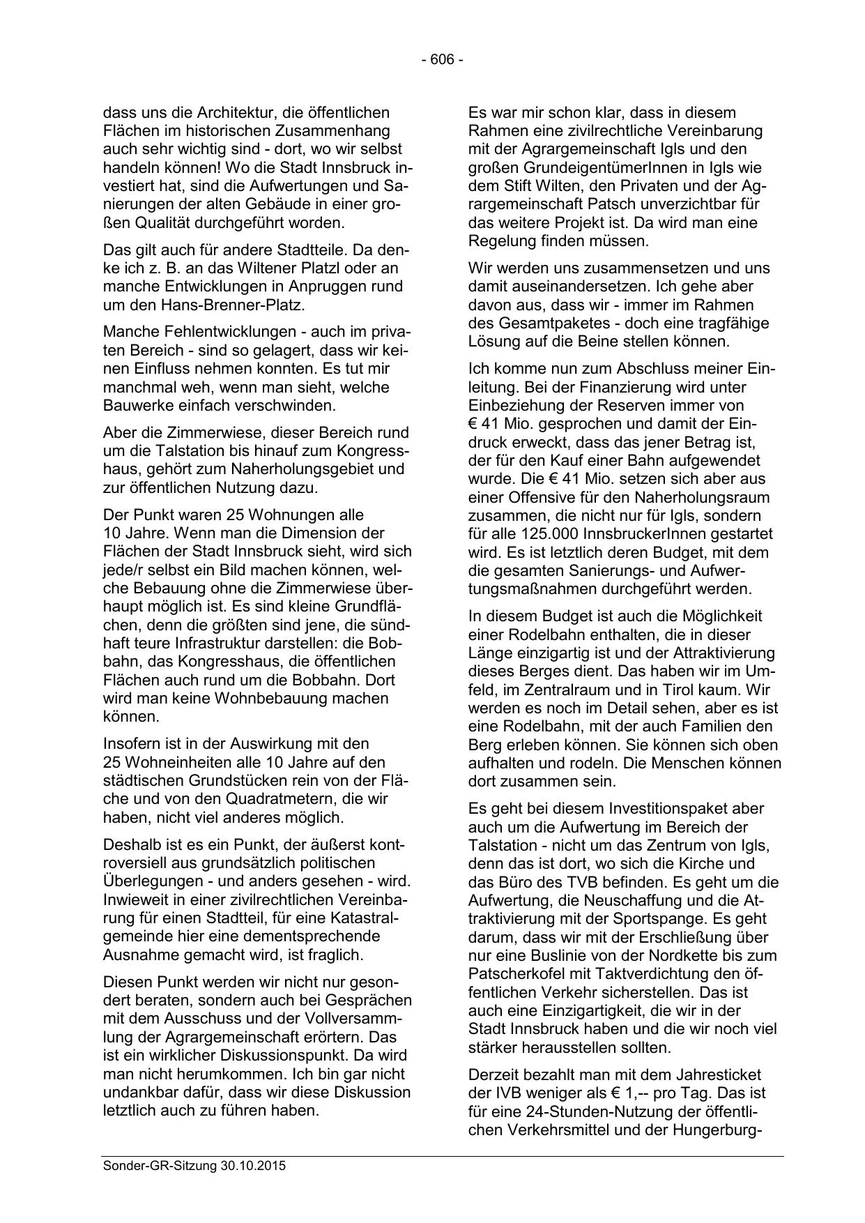 handeln können! Wo die Stadt Innsbruck investiert hat, sind die Aufwertungen und Sanierungen der alten Gebäude in einer großen Qualität durchgeführt worden.