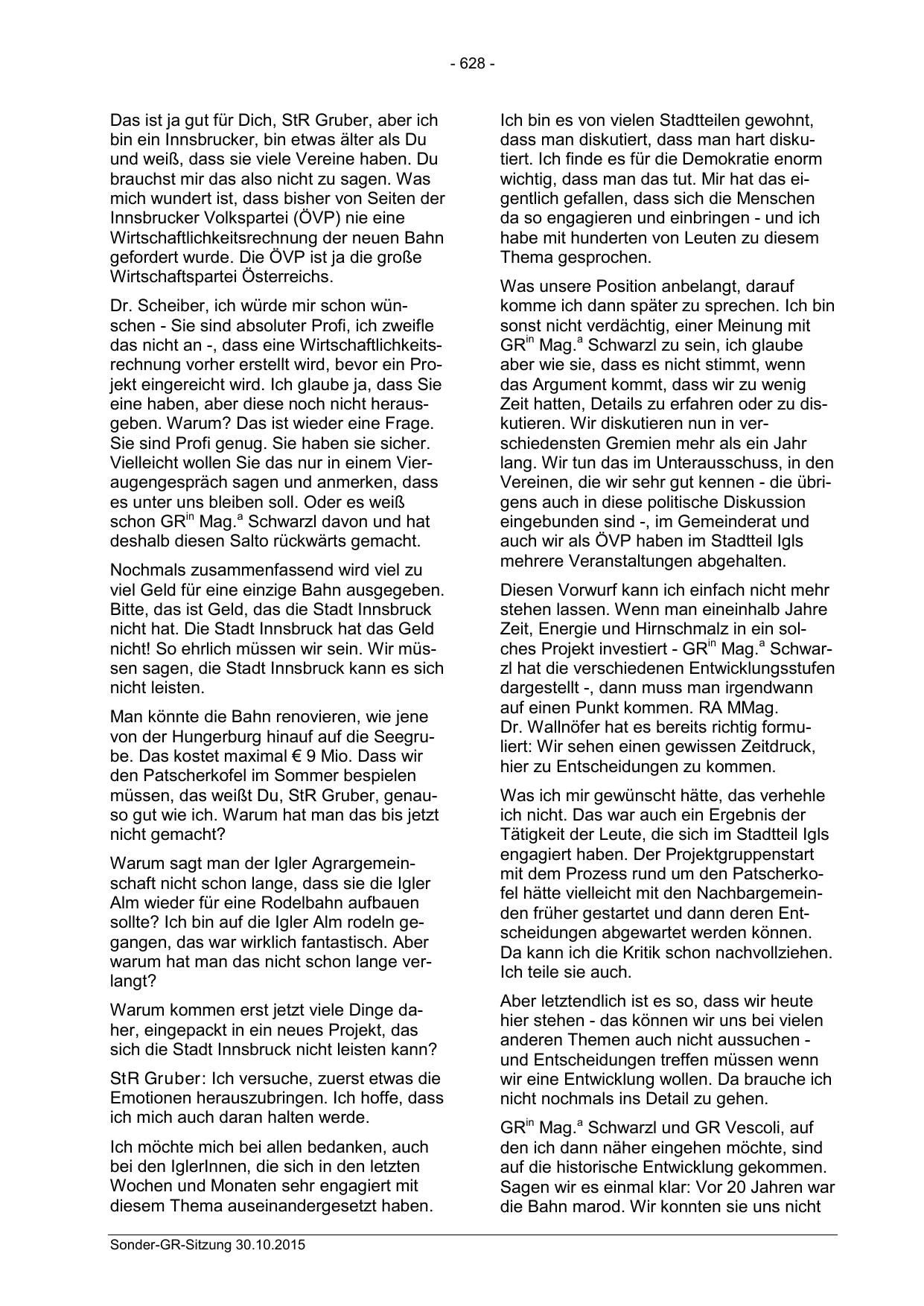 mit dem Prozess rund um den Patscherkofel hätte vielleicht mit den Nachbargemeinden früher gestartet und dann deren Entscheidungen abgewartet werden können.