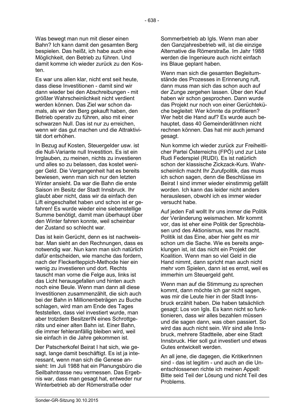 gesagt: Los von Igls. Es kann nicht so funktionieren, dass wir alles bezahlen müssen