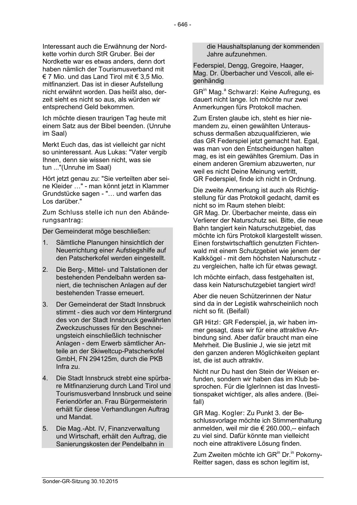 Interessant auch die Erwähnung der Nordkette vorhin durch StR Gruber. Bei der