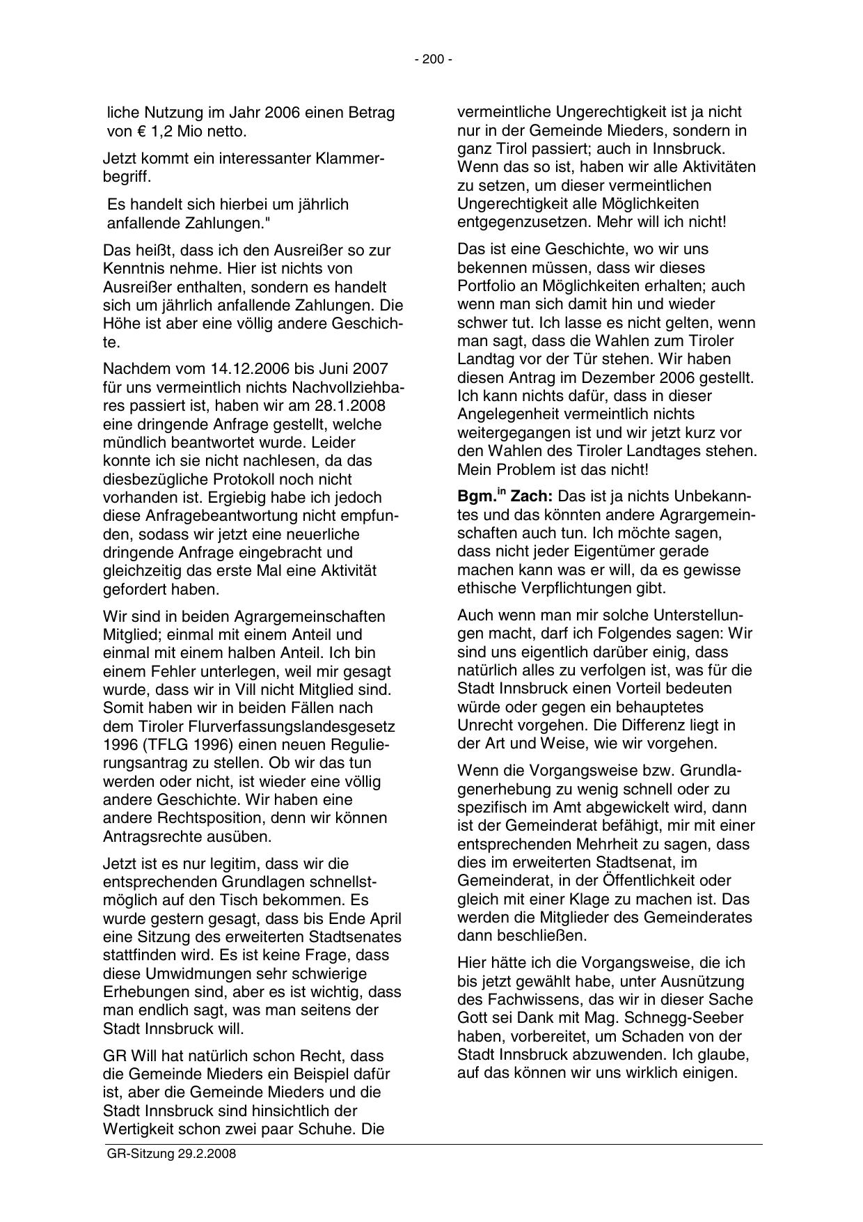 Bgm.in Zach: Das ist ja nichts Unbekanntes und das könnten andere Agrargemeinschaften auch tun. Ich möchte sagen,